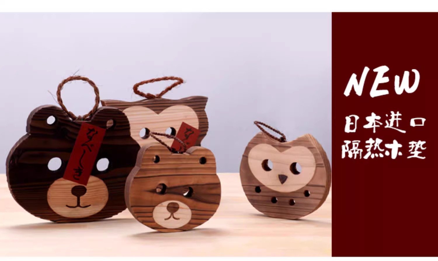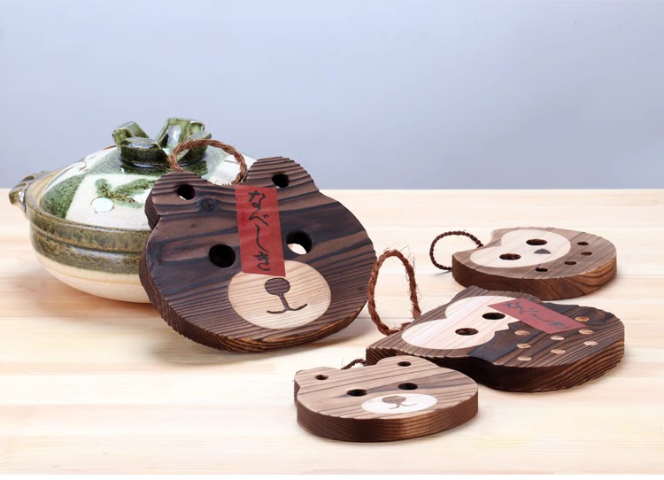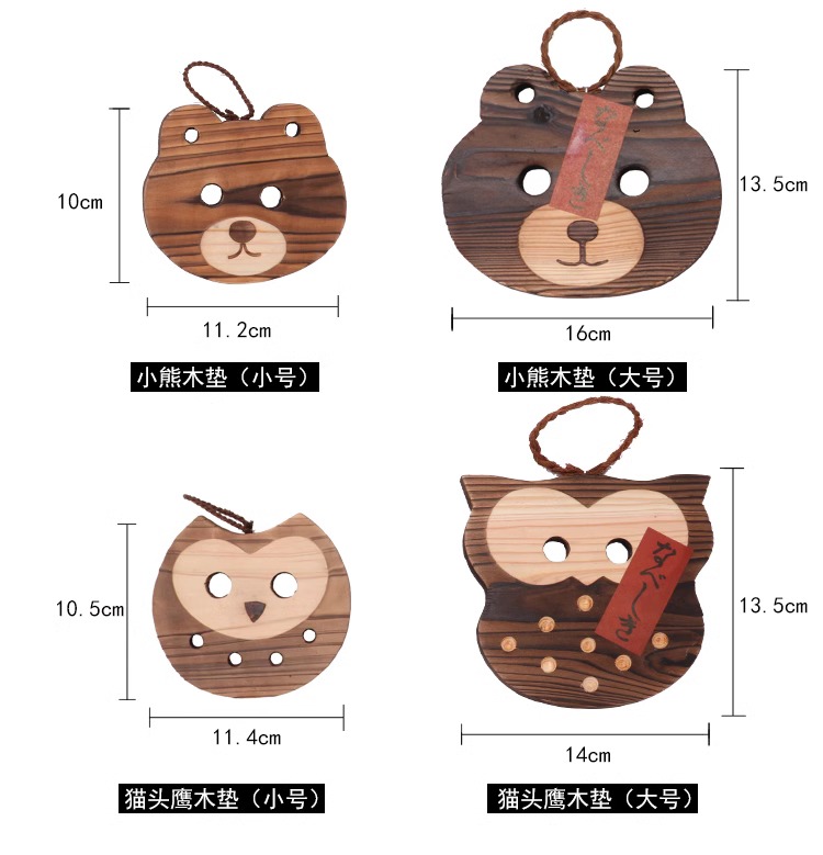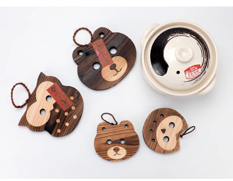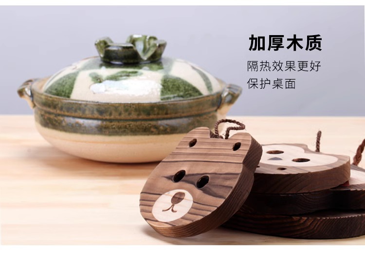 万古烧杉木熊锅垫木垫纯手工防烫加厚木质16.5*14cm