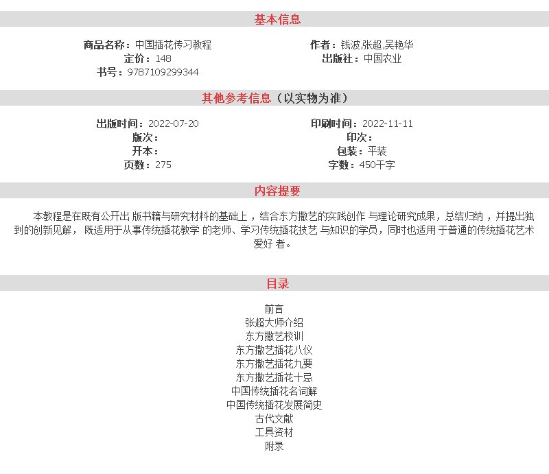 中国插花传习教程【官方正版,可开发票,下单时留开票信息和电子邮箱】