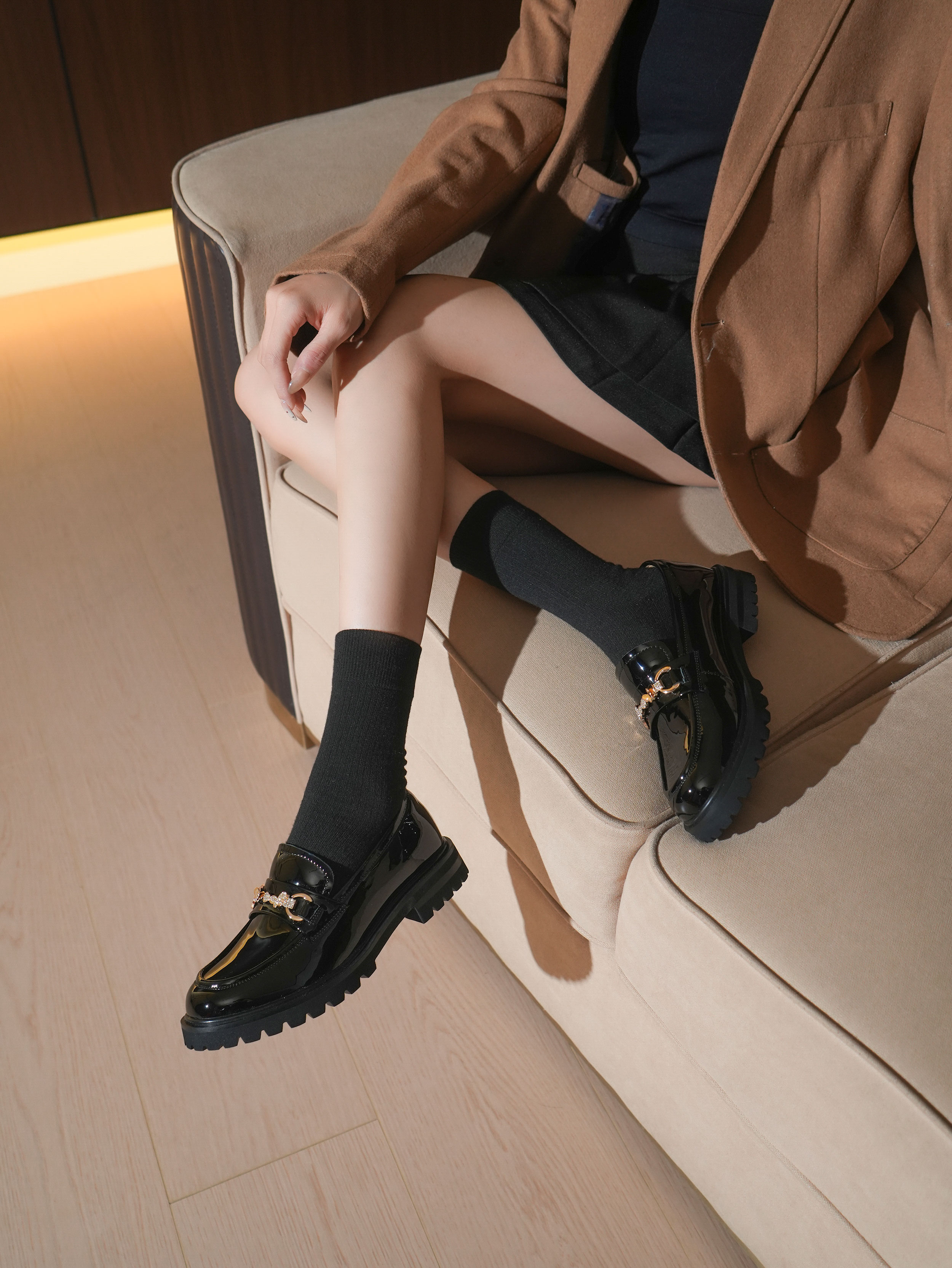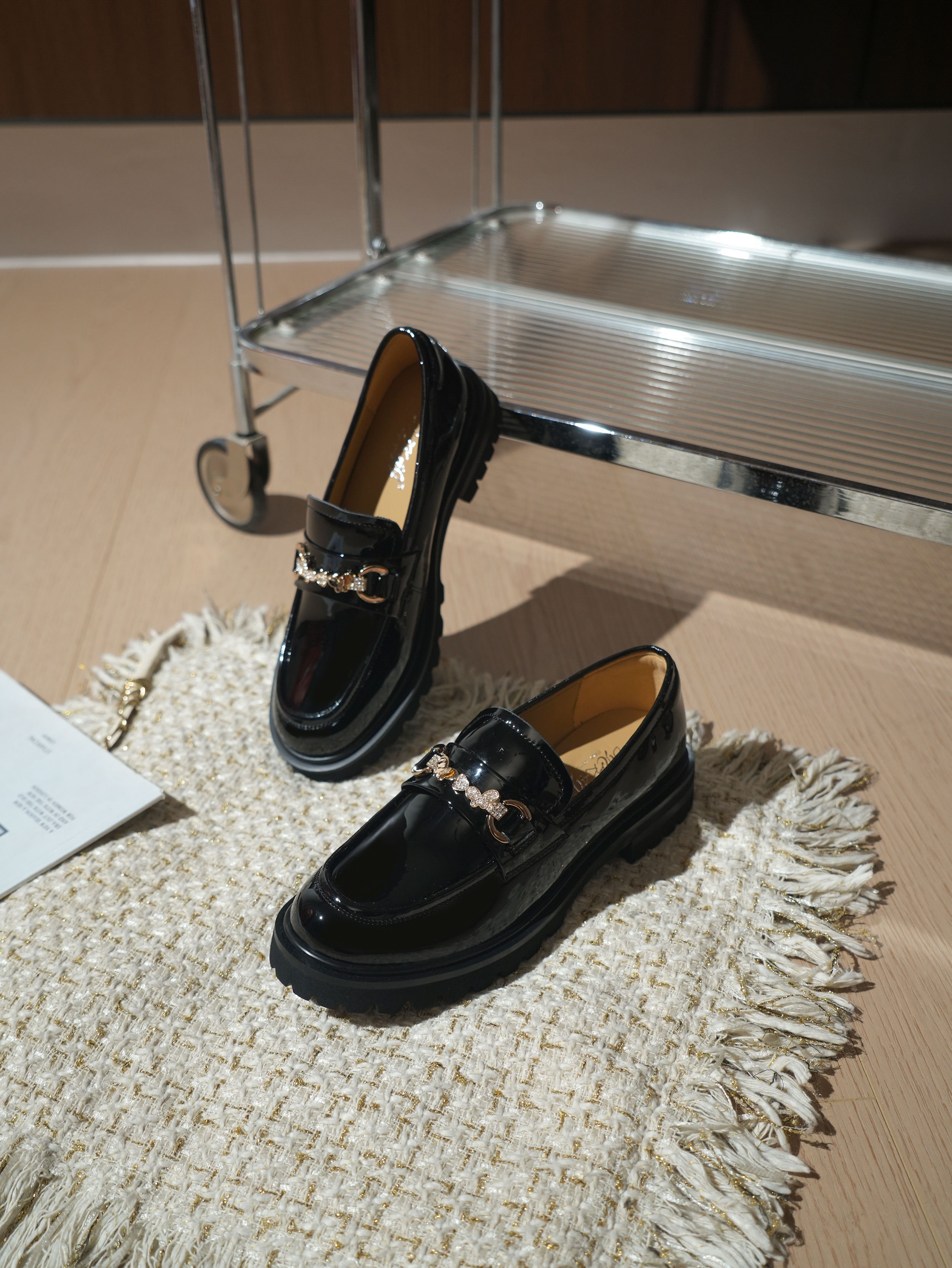 豪麟名鞋奥莱迪嘉女鞋牛移膜革乐福鞋DJXXO52WS205黑色 原价1660元