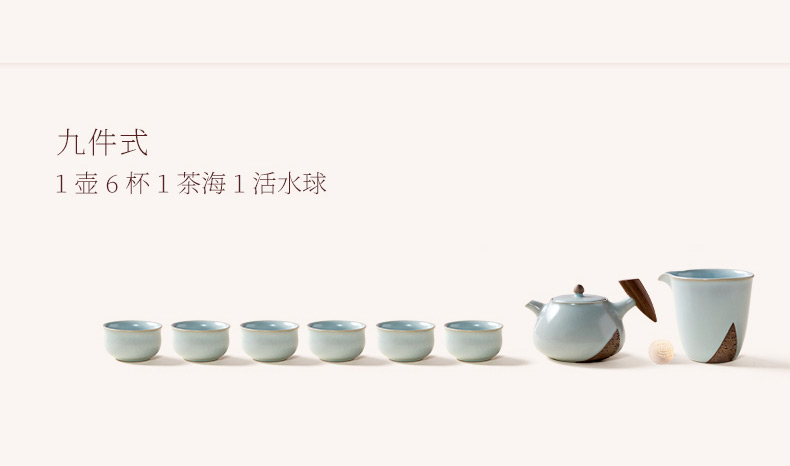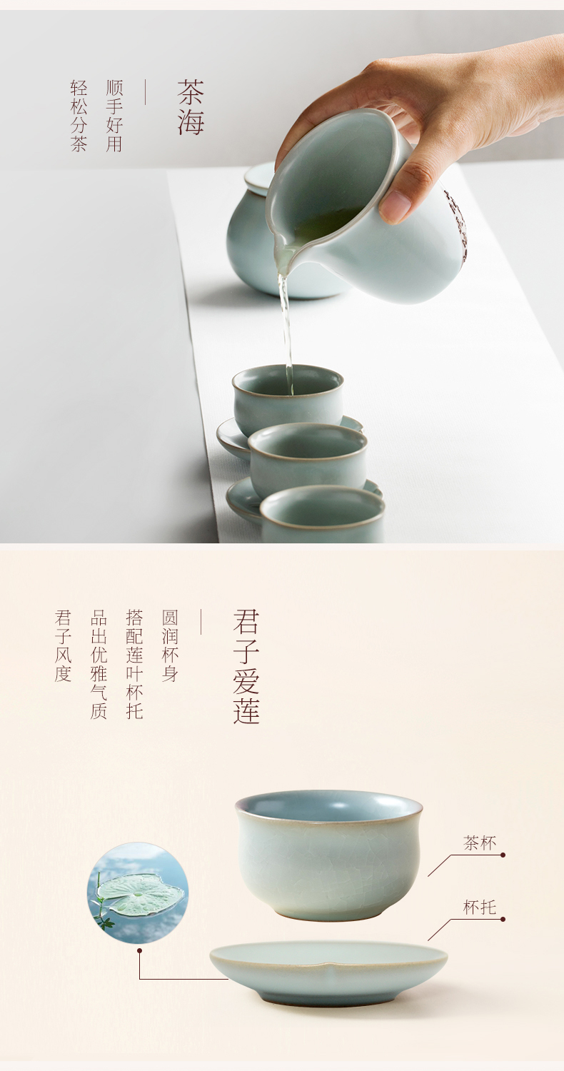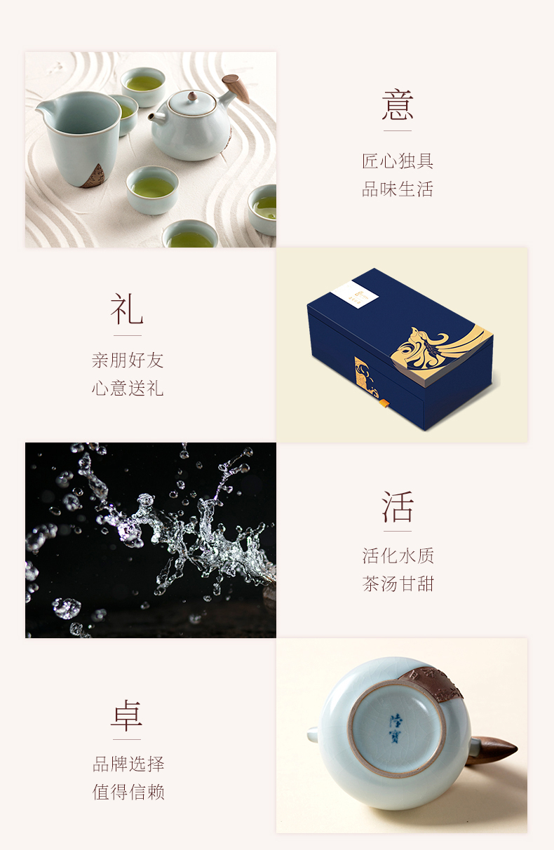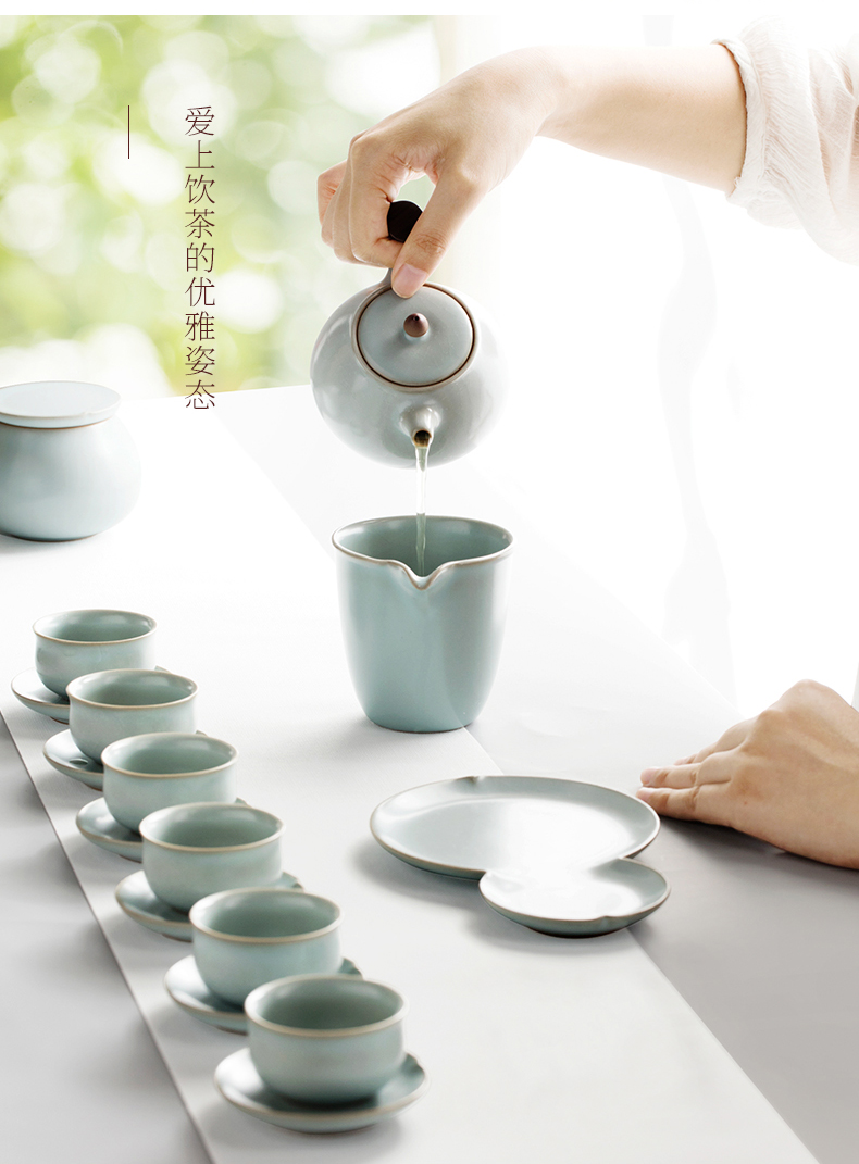 陆宝汝窑入木三分茶组茶礼开片养壶茶具整套一壶六杯送礼收藏