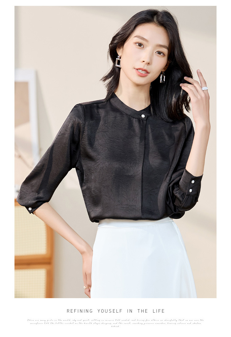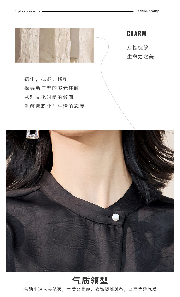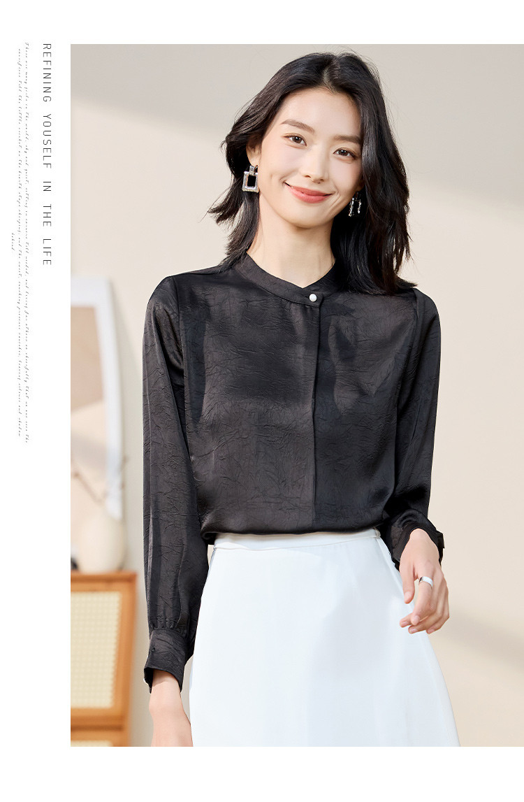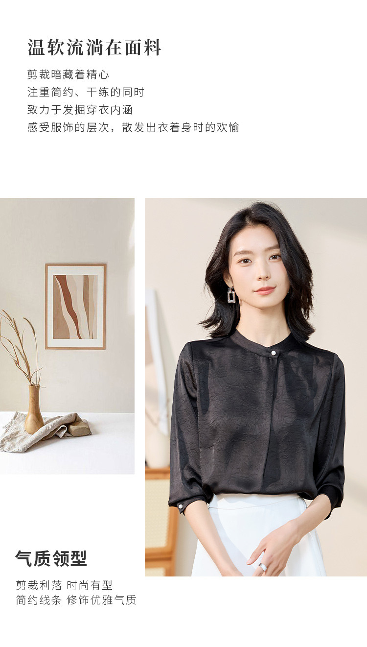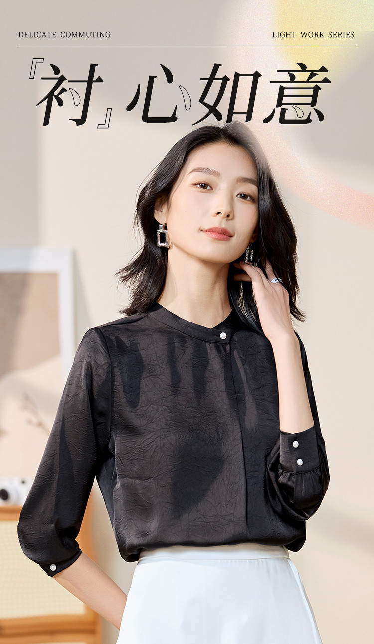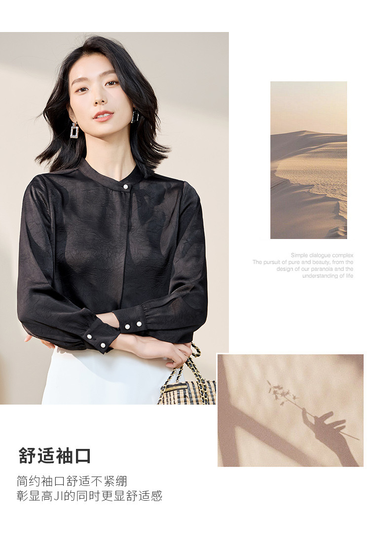 【知性优雅】罗蒙女士长袖衬衫圆领简约舒适百搭商务衬衫女