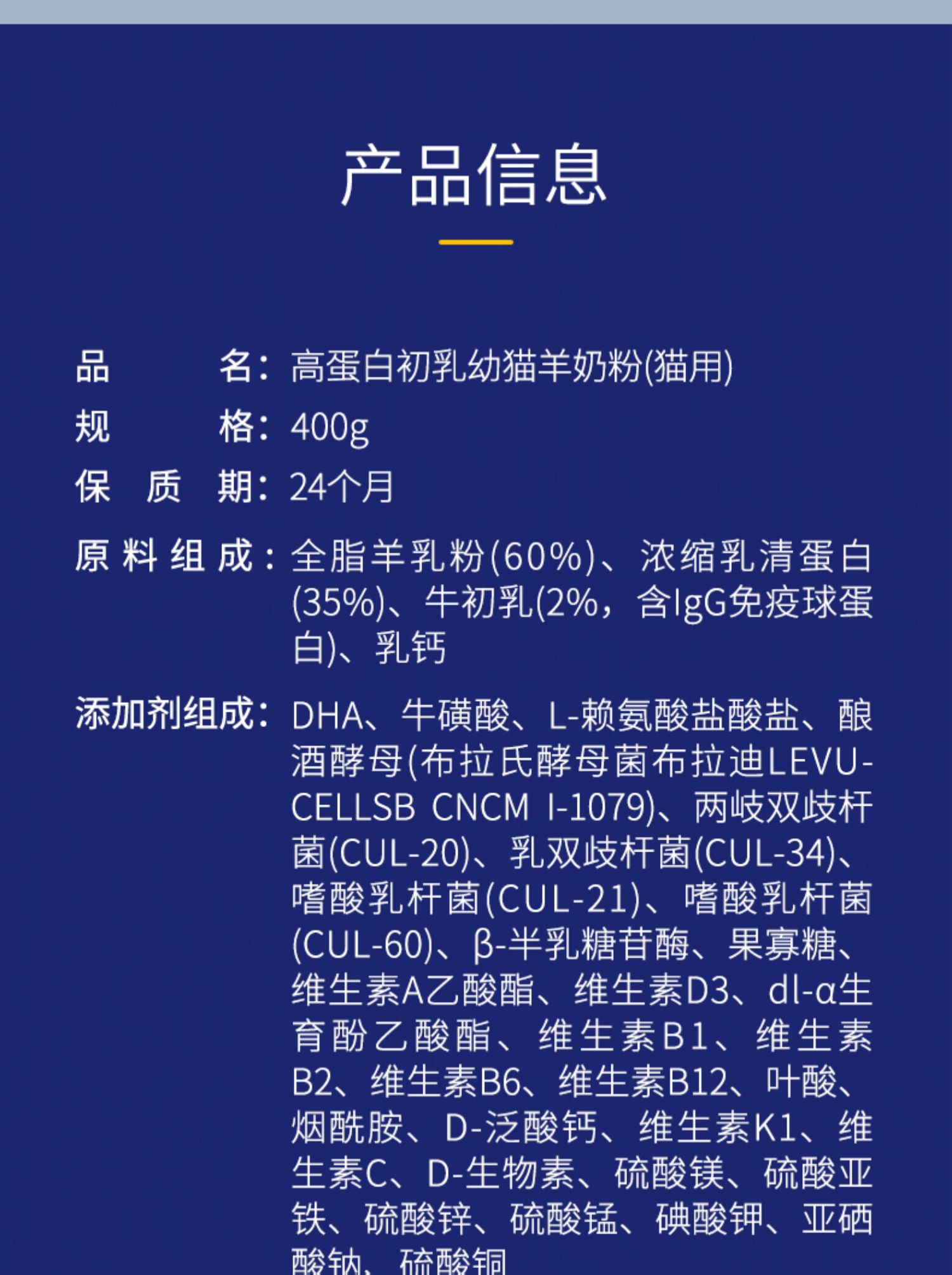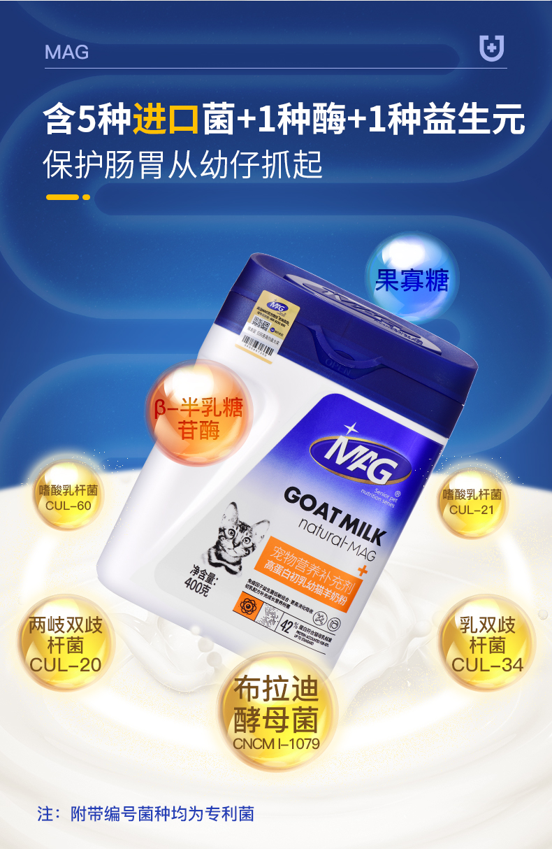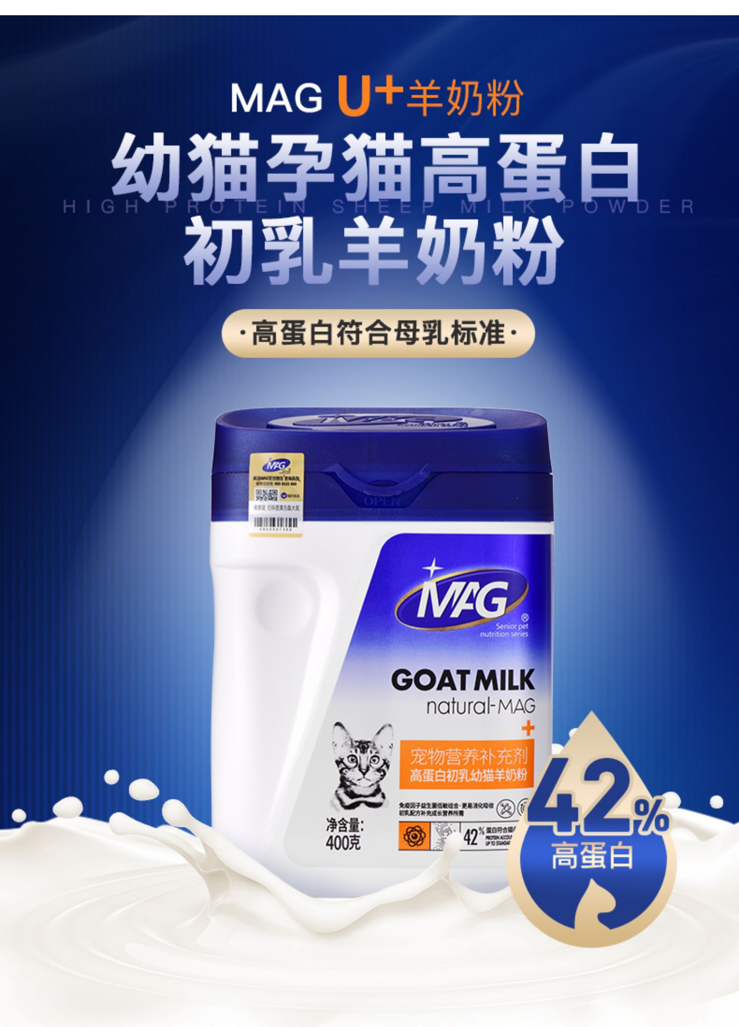 U+系列 MAG【初乳羊奶粉】猫咪专用 新生幼猫怀孕猫咪专用高蛋白初乳羊奶粉400g/瓶
