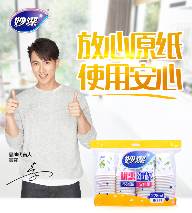 【妙洁】一次性纸杯特惠装(8盎司228ml*80只) *3包