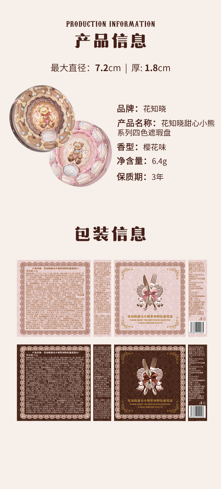 花知晓甜心小熊系列四色遮瑕盘