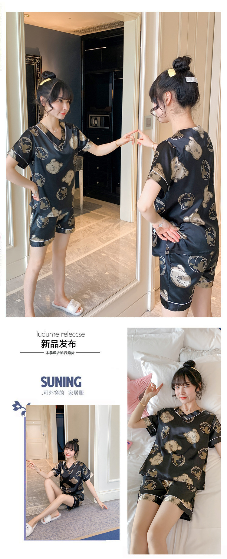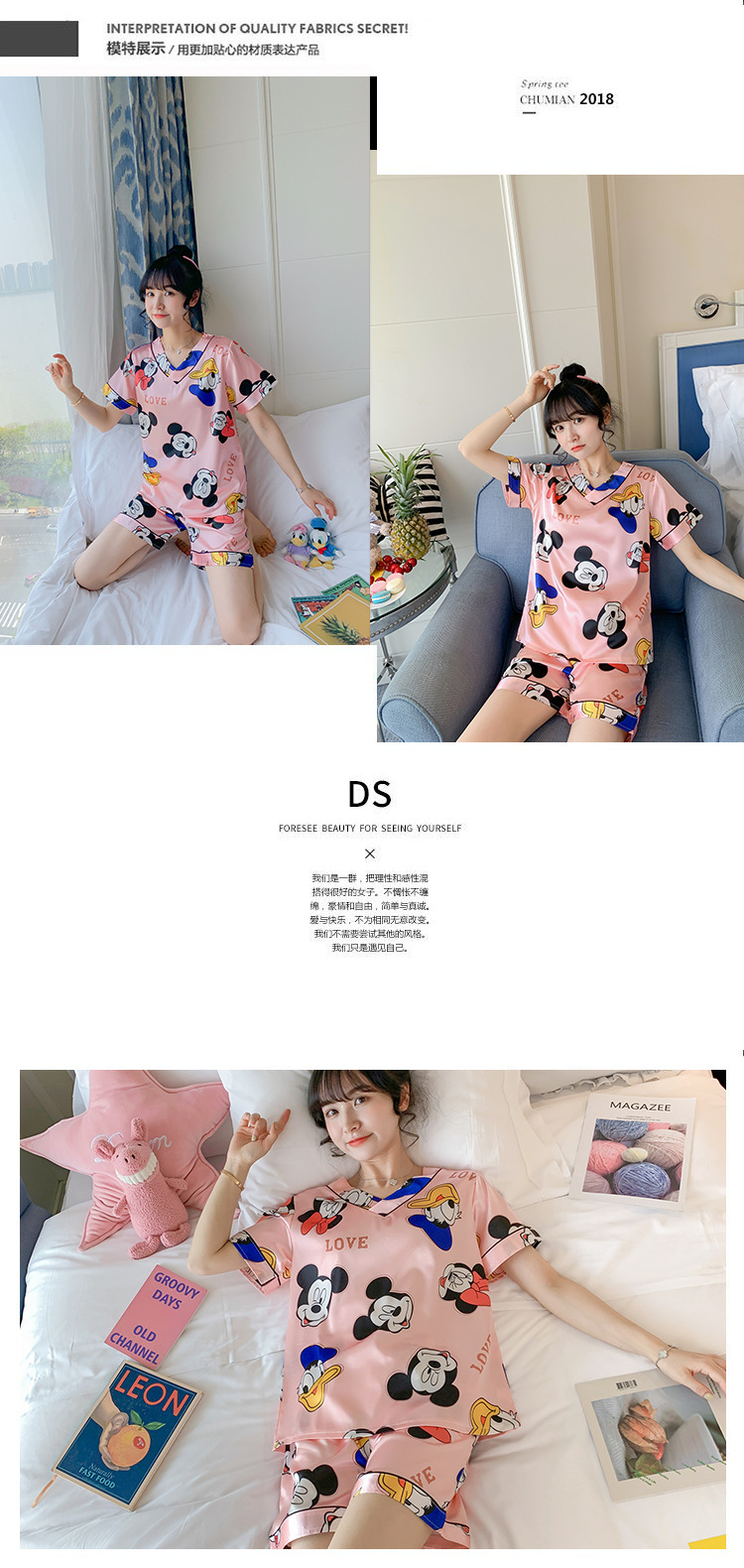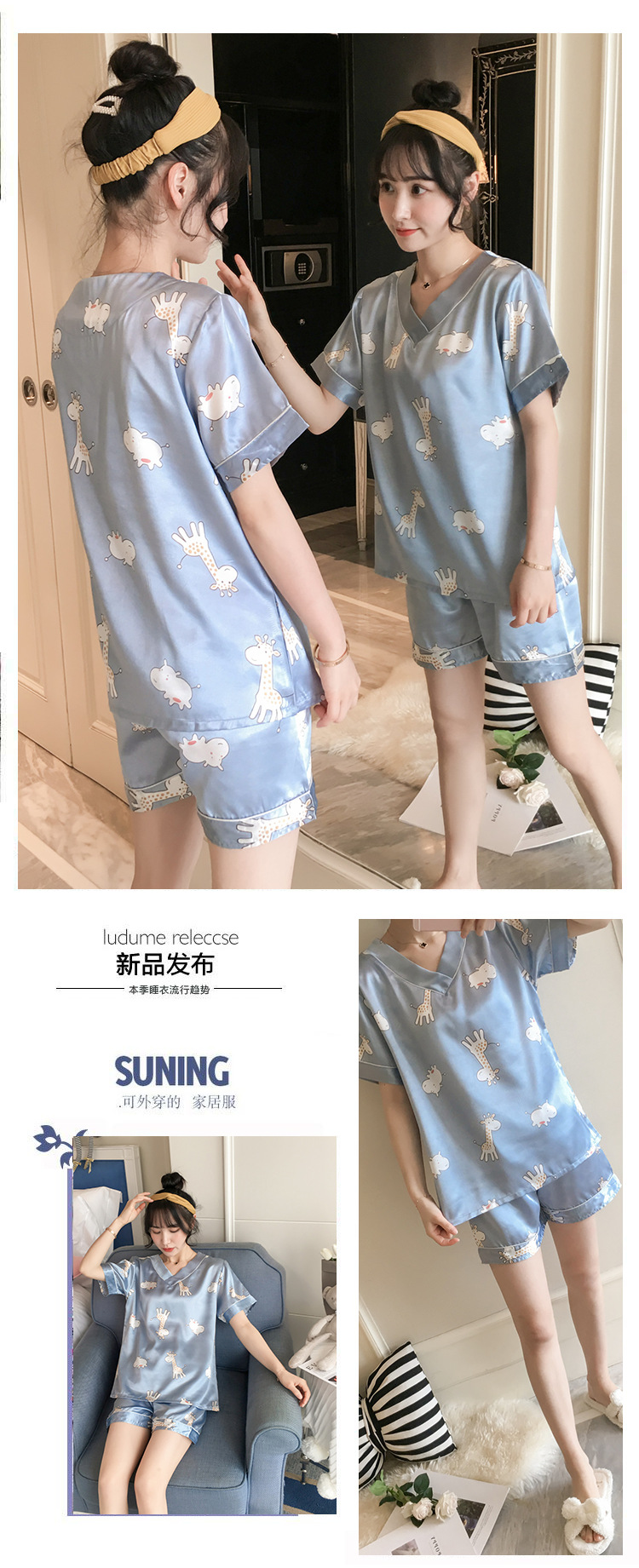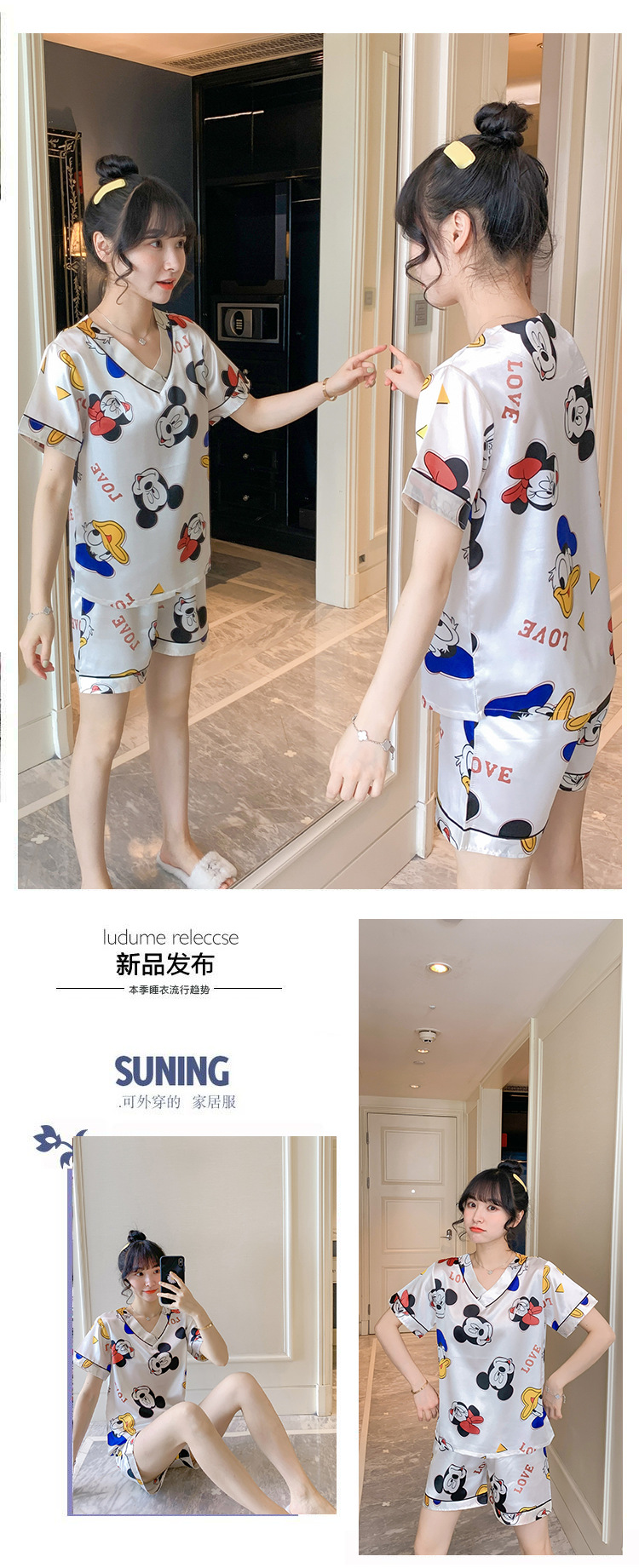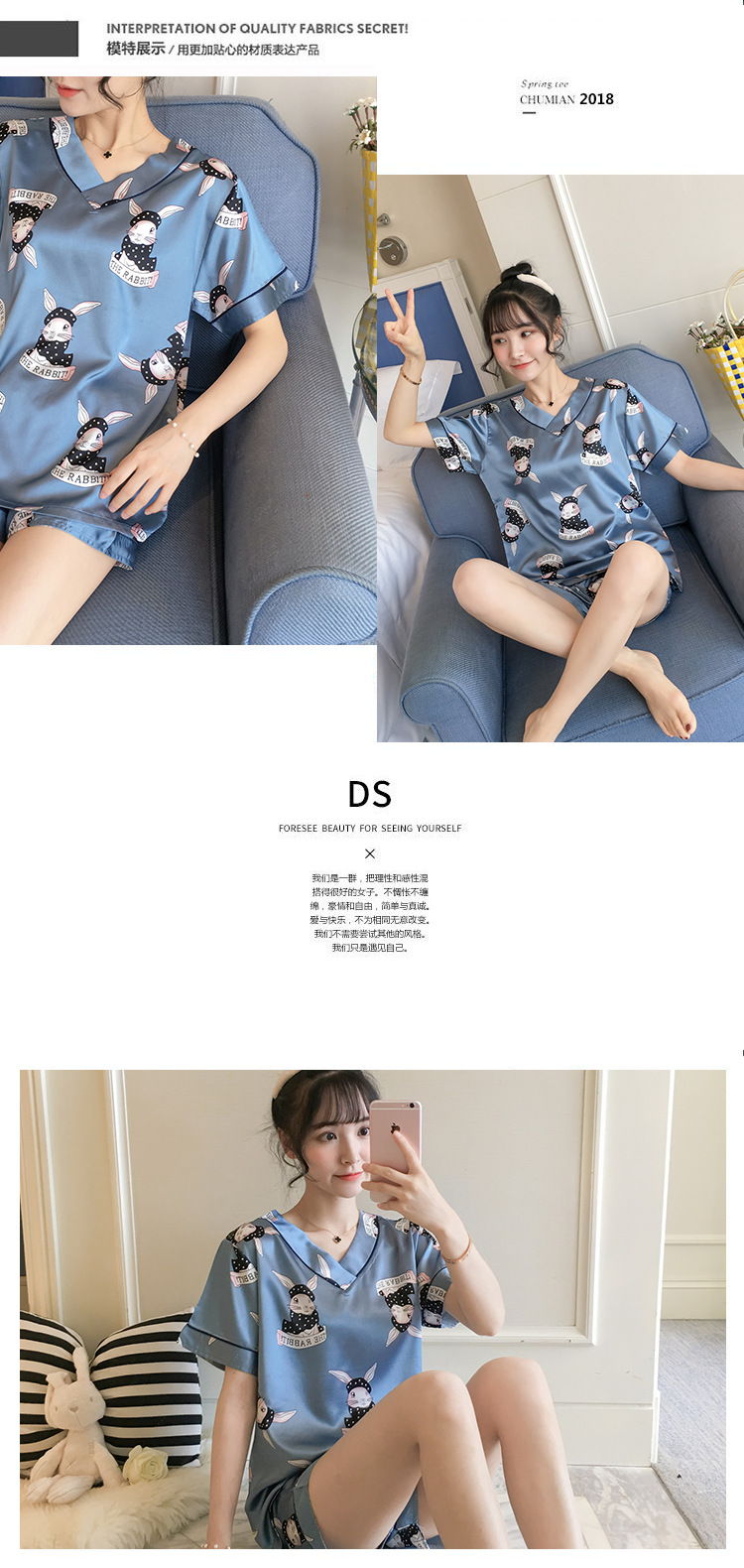 「38款可选」冰丝睡衣女短袖夏卡通V领凉爽女士家居服上衣裤子套装