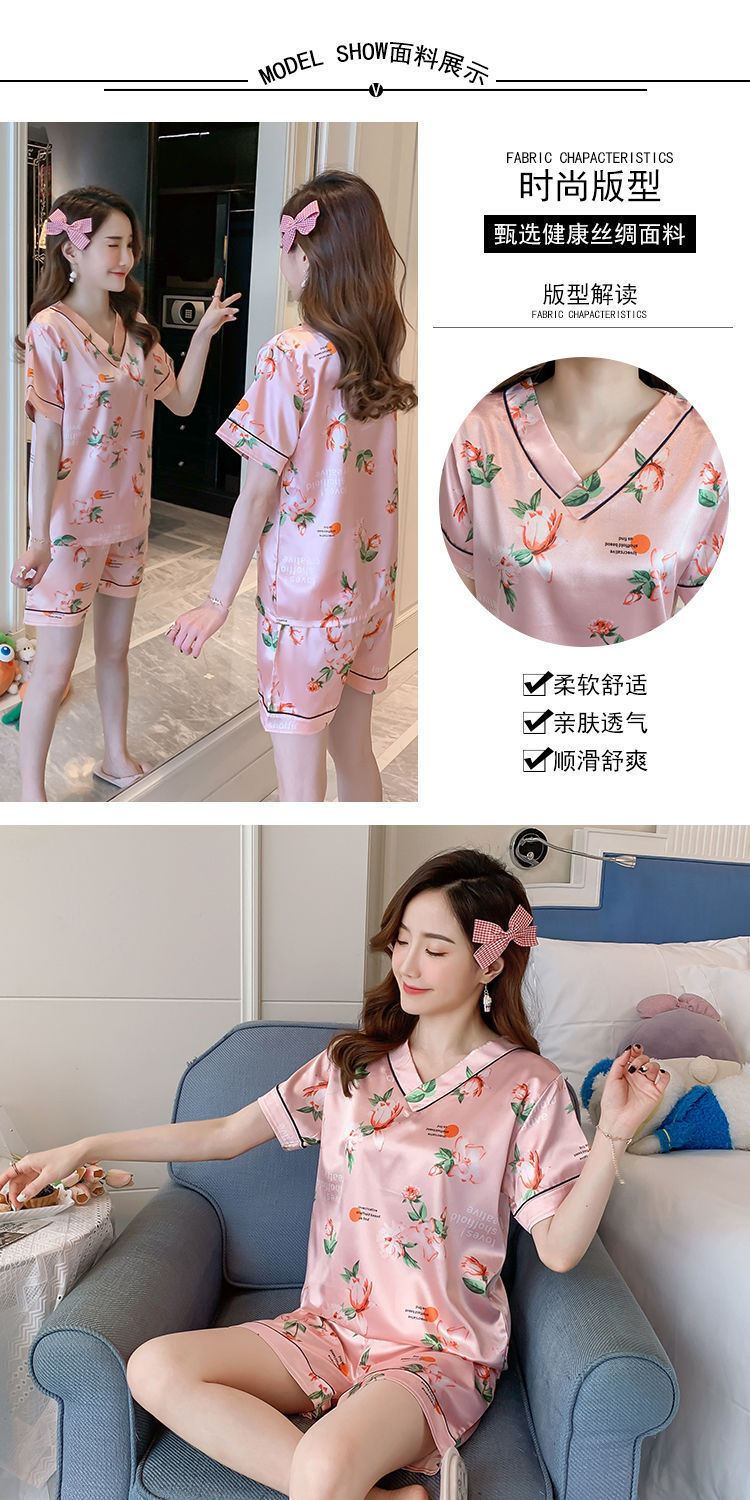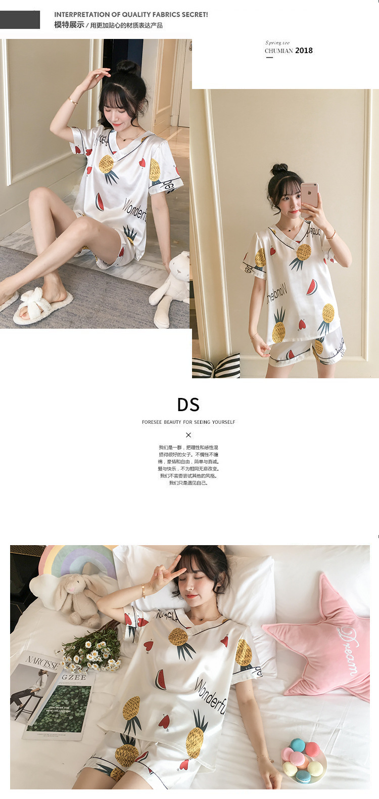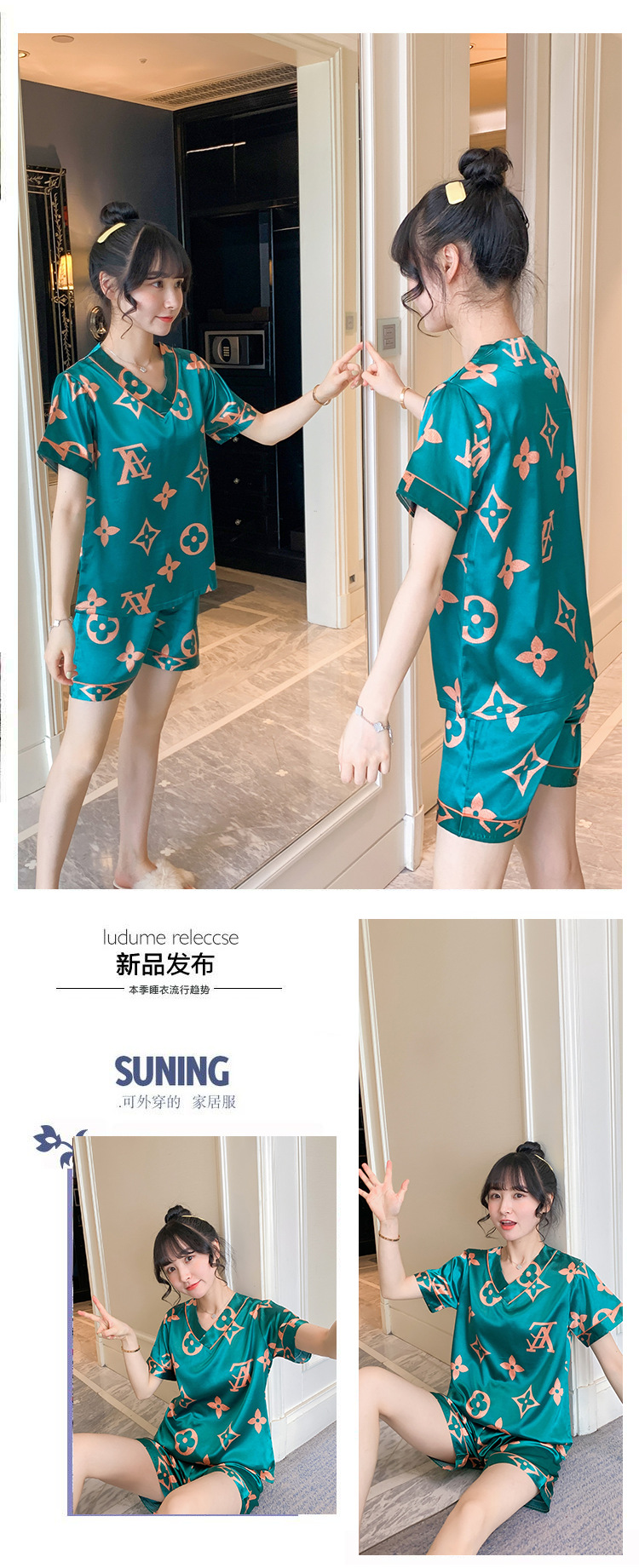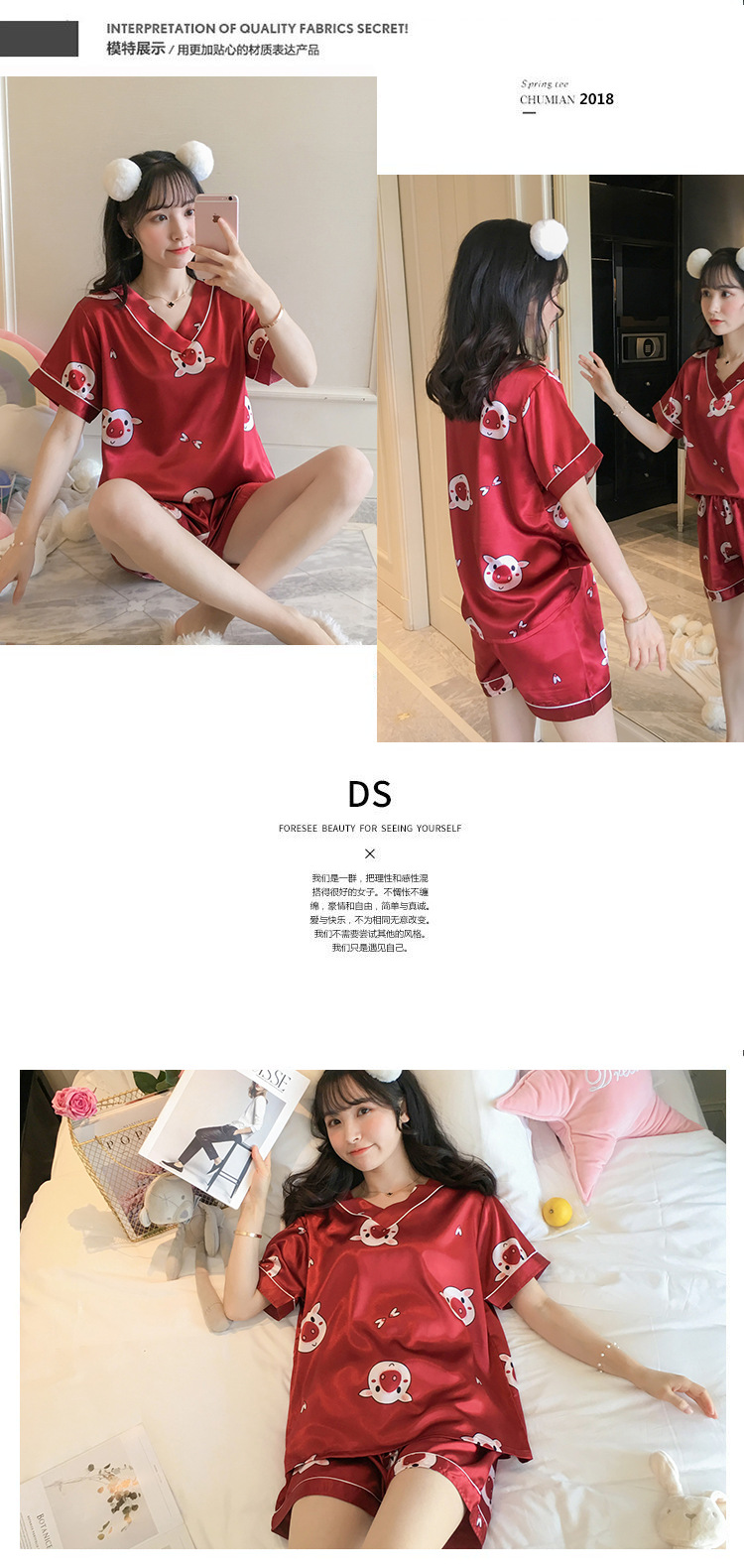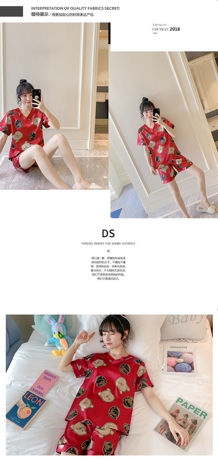「38款可选」冰丝睡衣女短袖夏卡通V领凉爽女士家居服上衣裤子套装