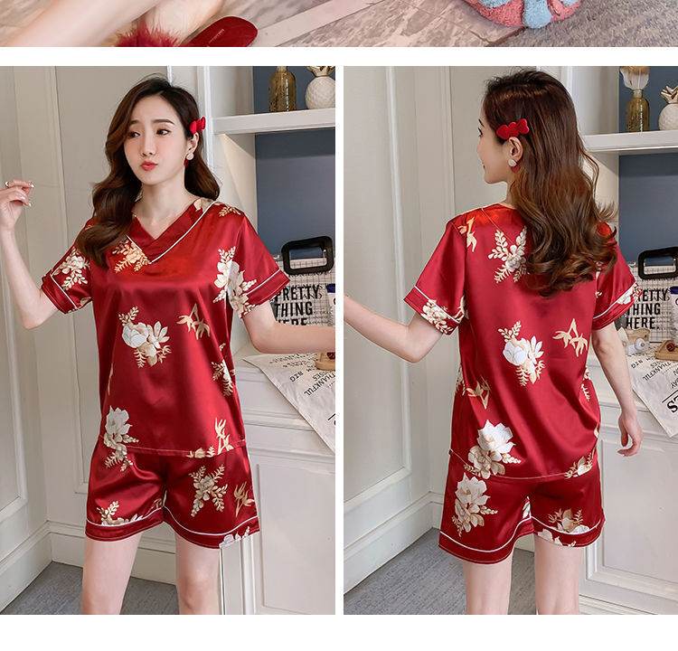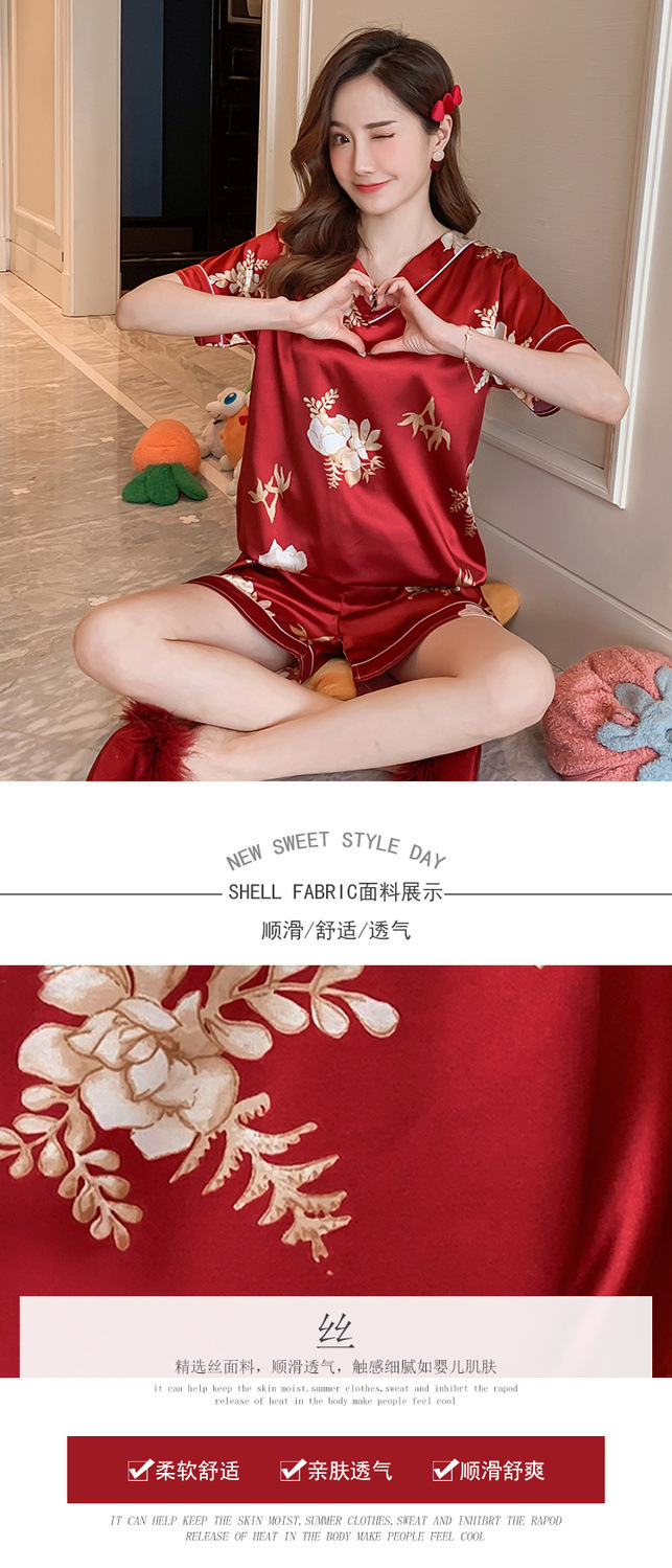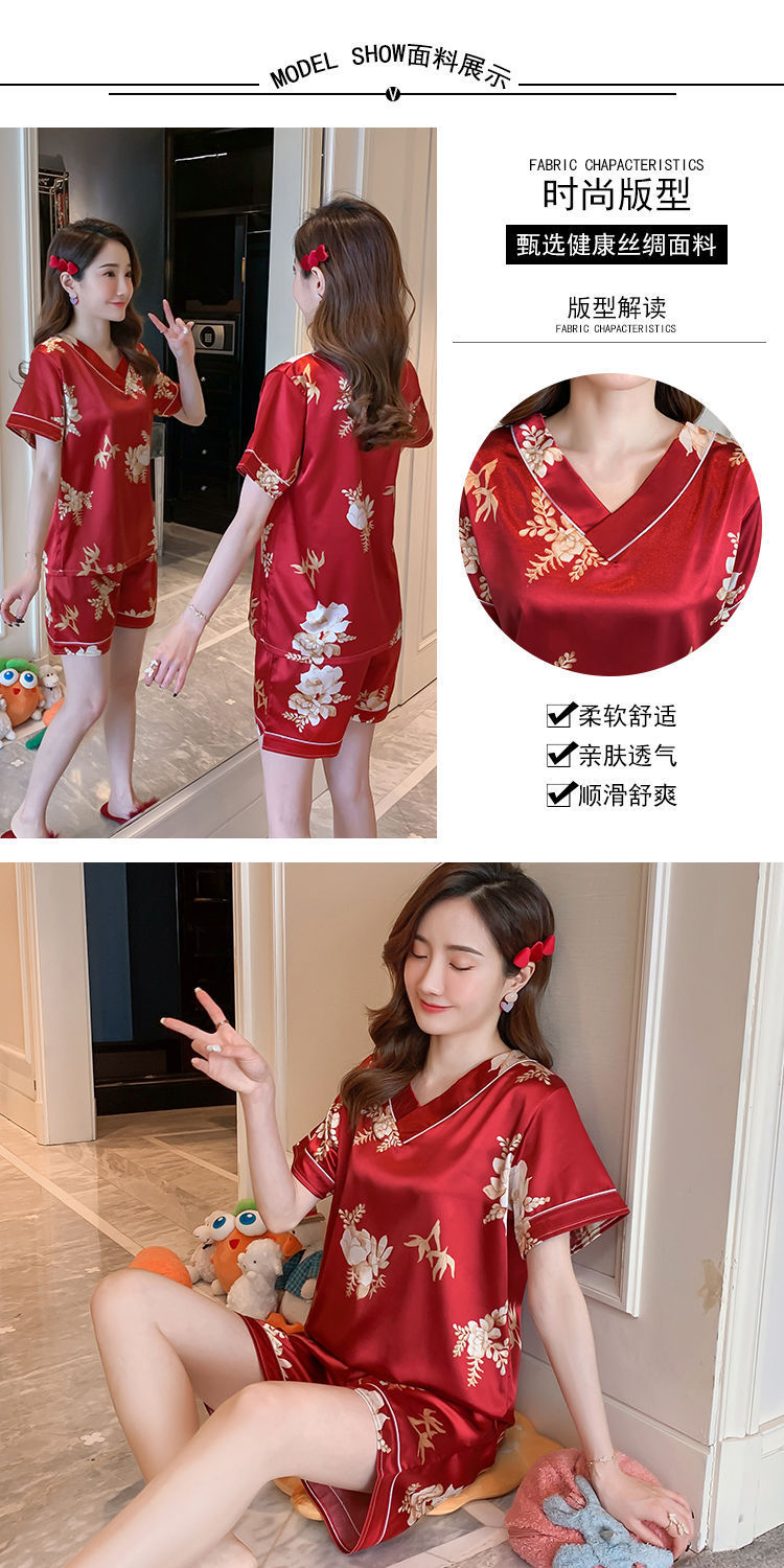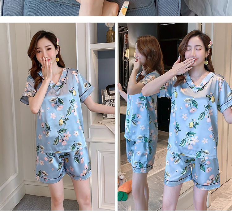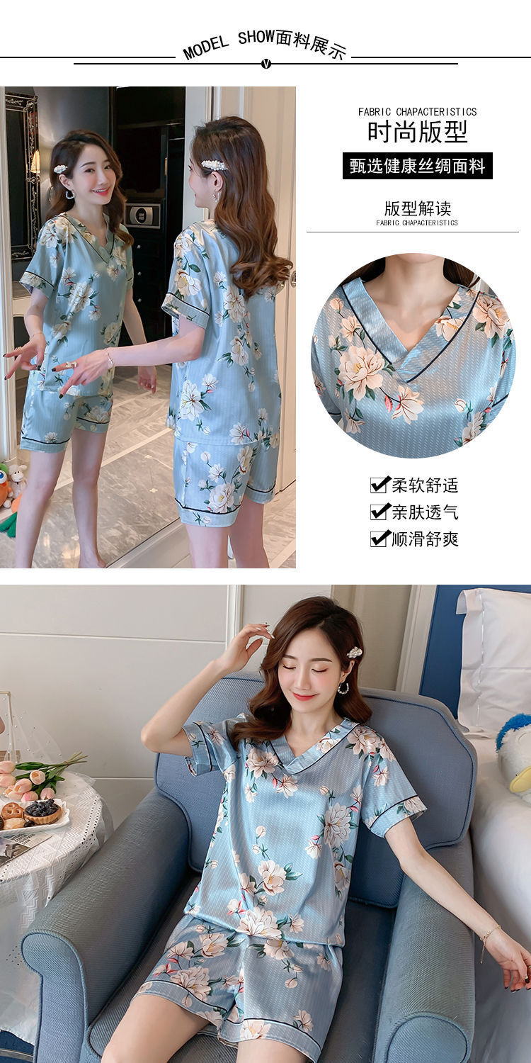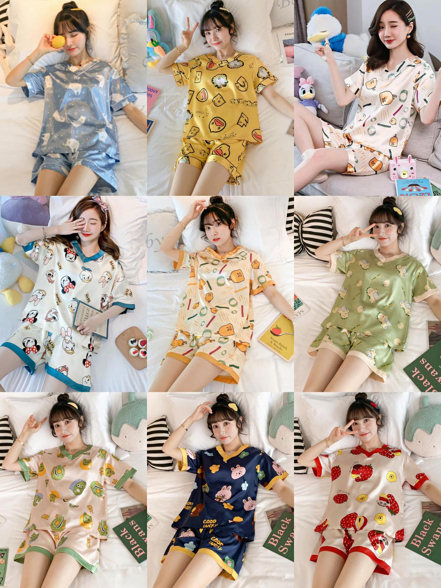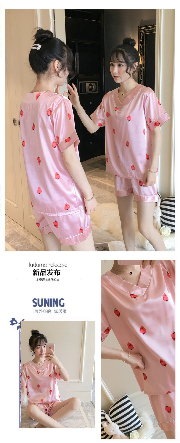 「38款可选」冰丝睡衣女短袖夏卡通V领凉爽女士家居服上衣裤子套装