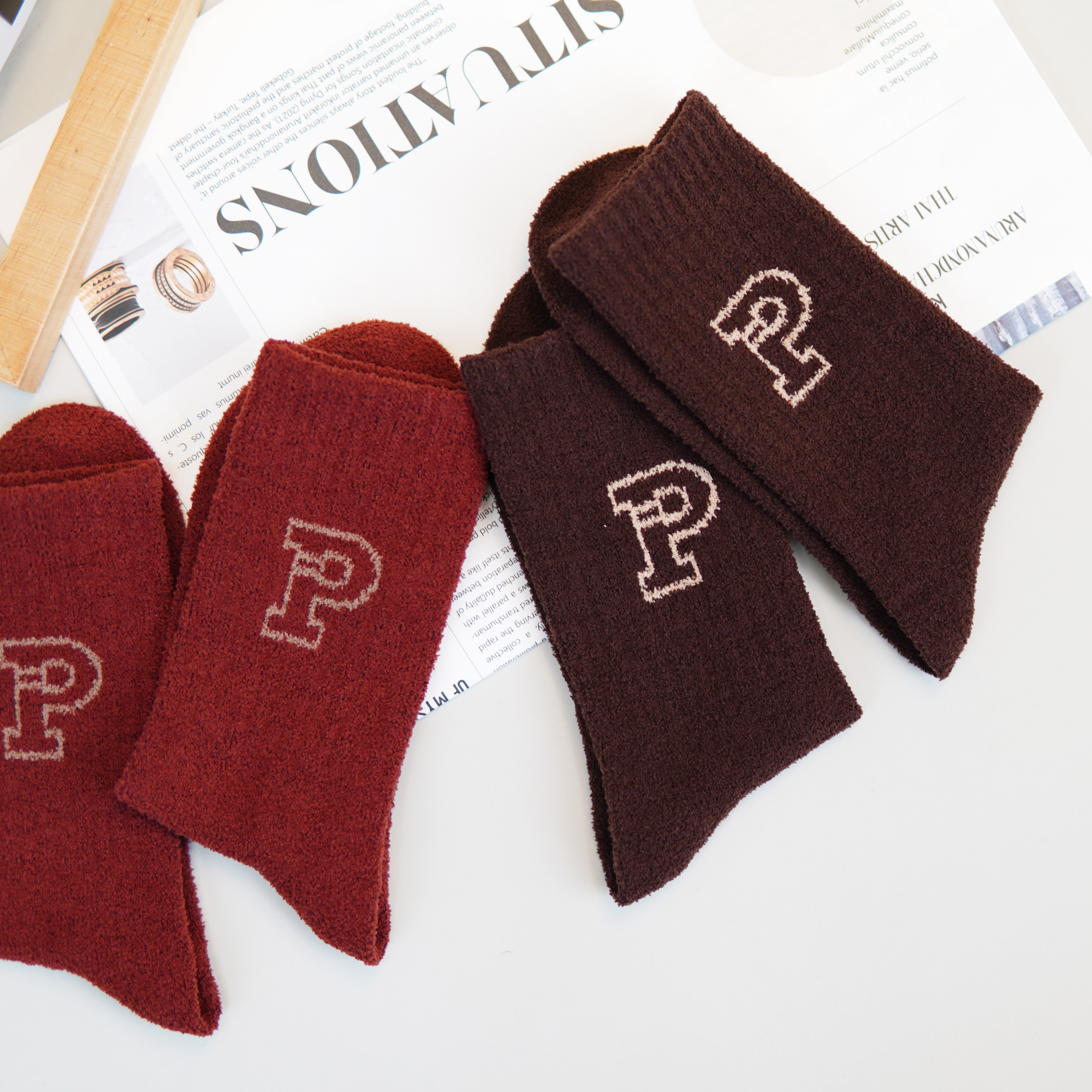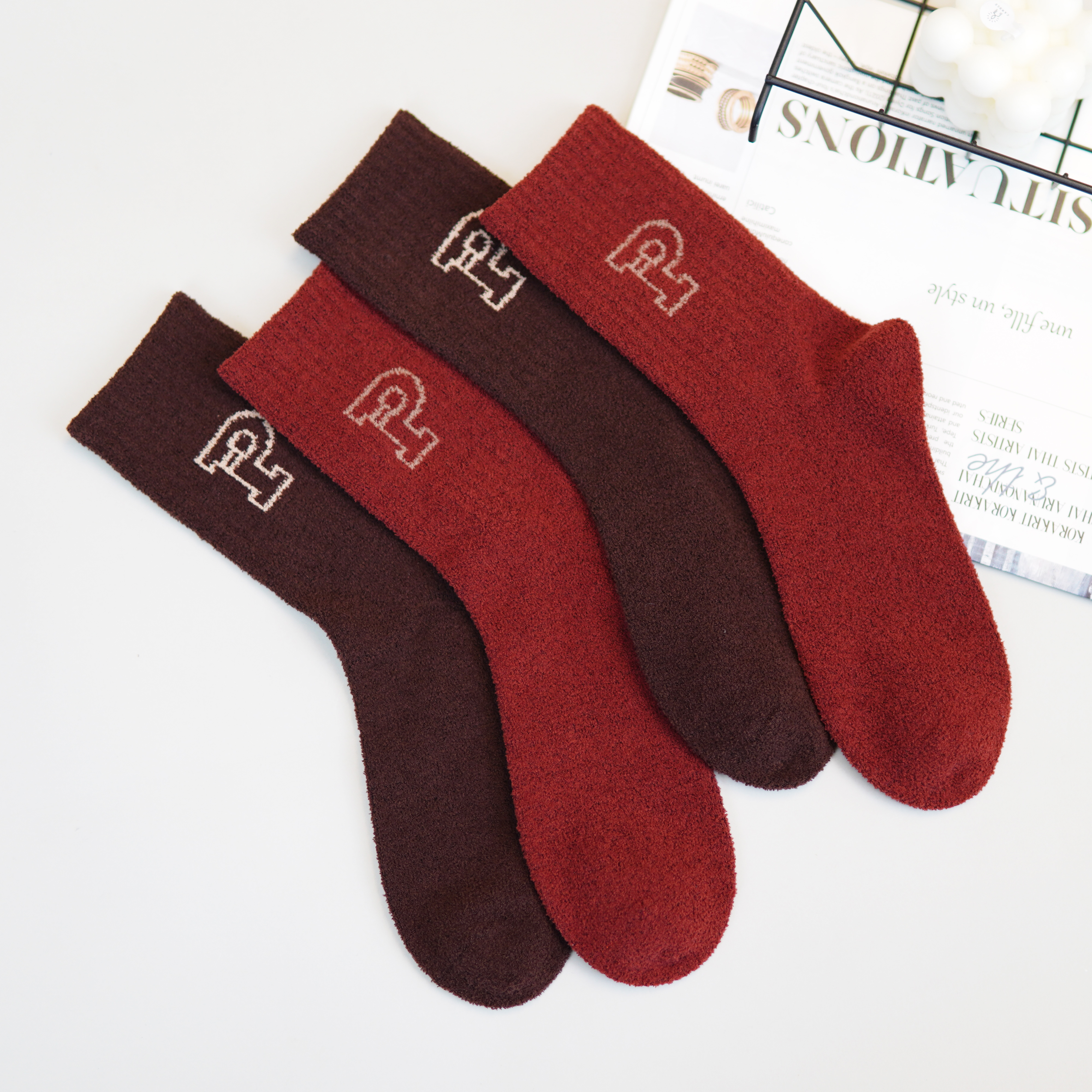 【2双装】【6双6折】女士半边绒长筒袜秋冬棉袜保暖舒适袜子棉袜子【2422703】