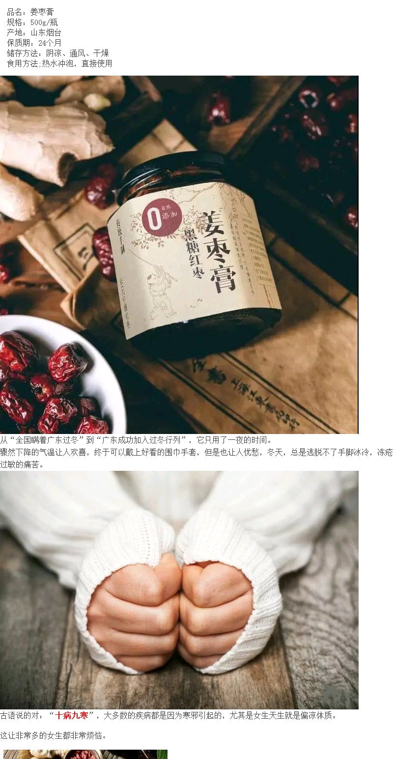 【足量足料!】纯手工熬制丰富用料红糖姜枣膏暖宫暖胃500g(7天左右发货)