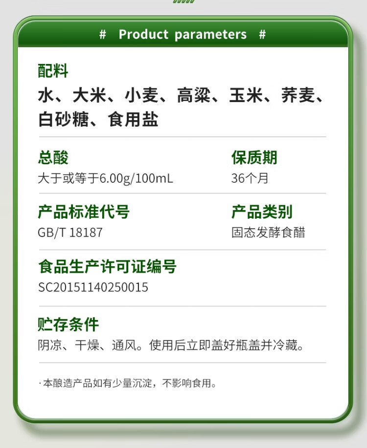 千禾 窖醋10年6度酿造食醋 500ml/瓶