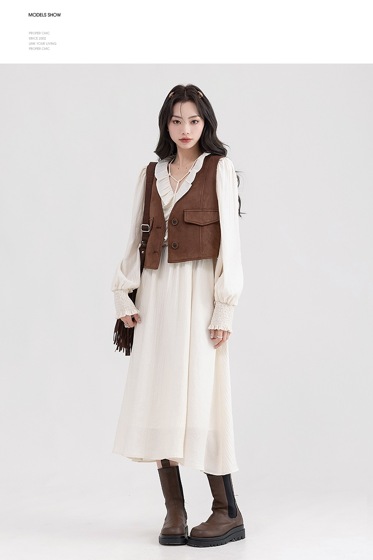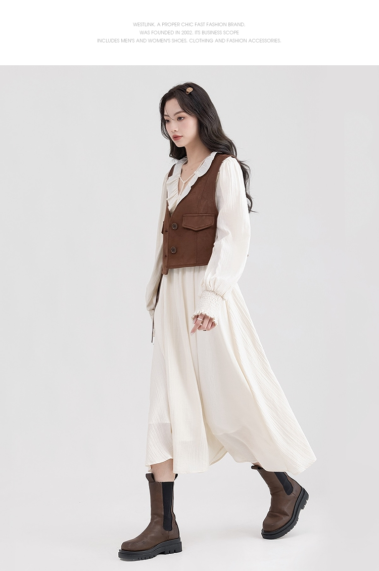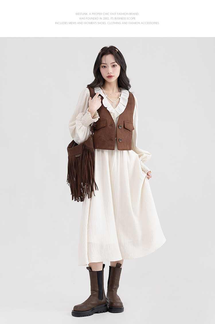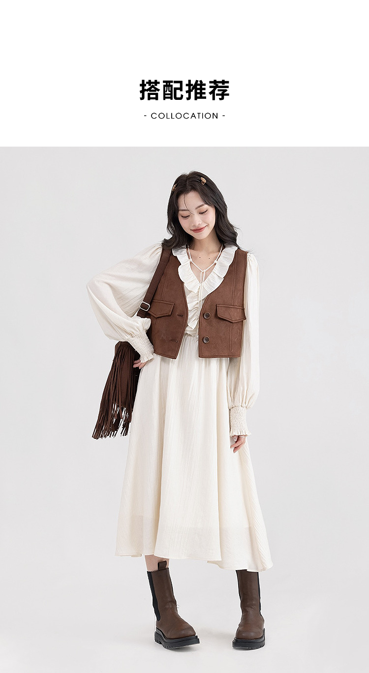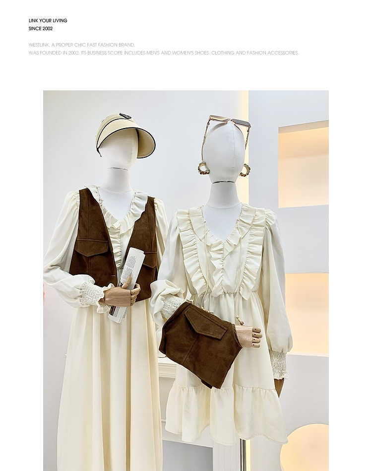 西遇荷叶边v领连衣裙套装女新款叠穿马甲背心两件套SS150116/SS150117/SS150118