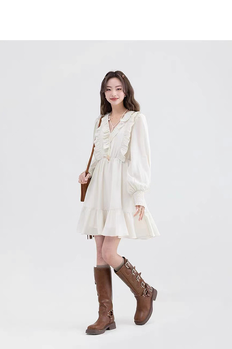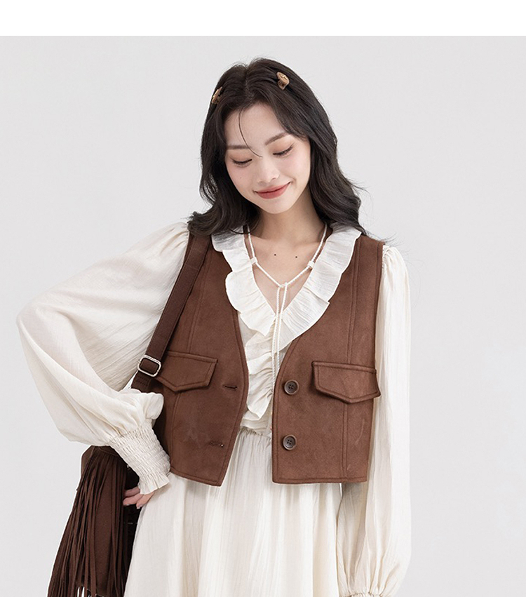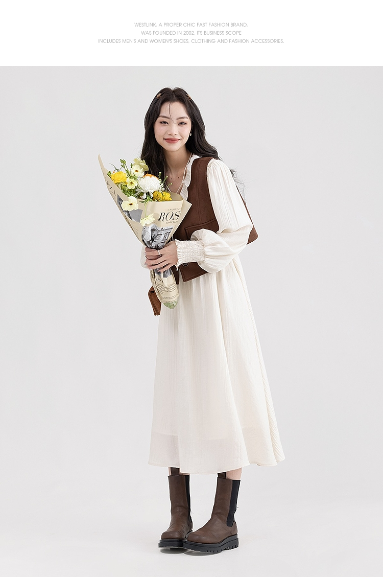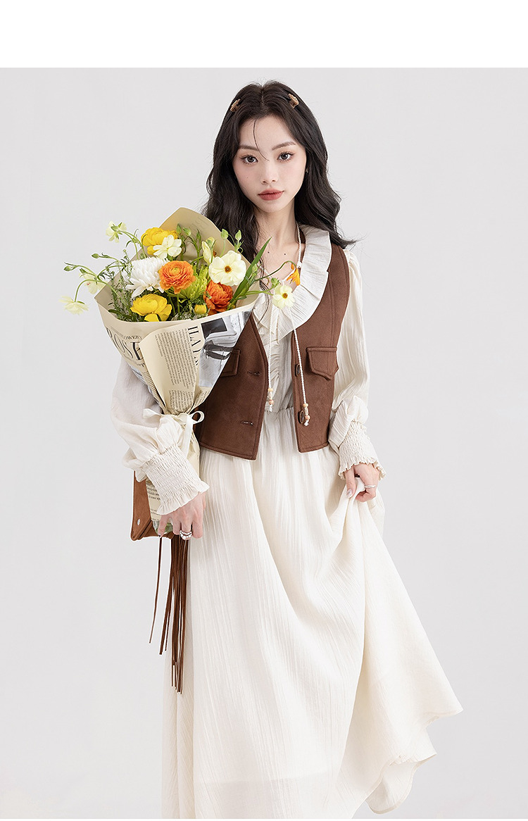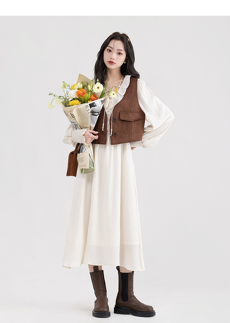 西遇荷叶边v领连衣裙套装女新款叠穿马甲背心两件套SS150116/SS150117/SS150118
