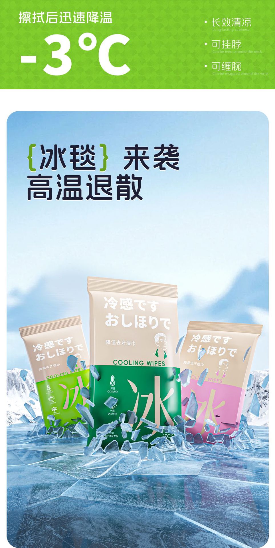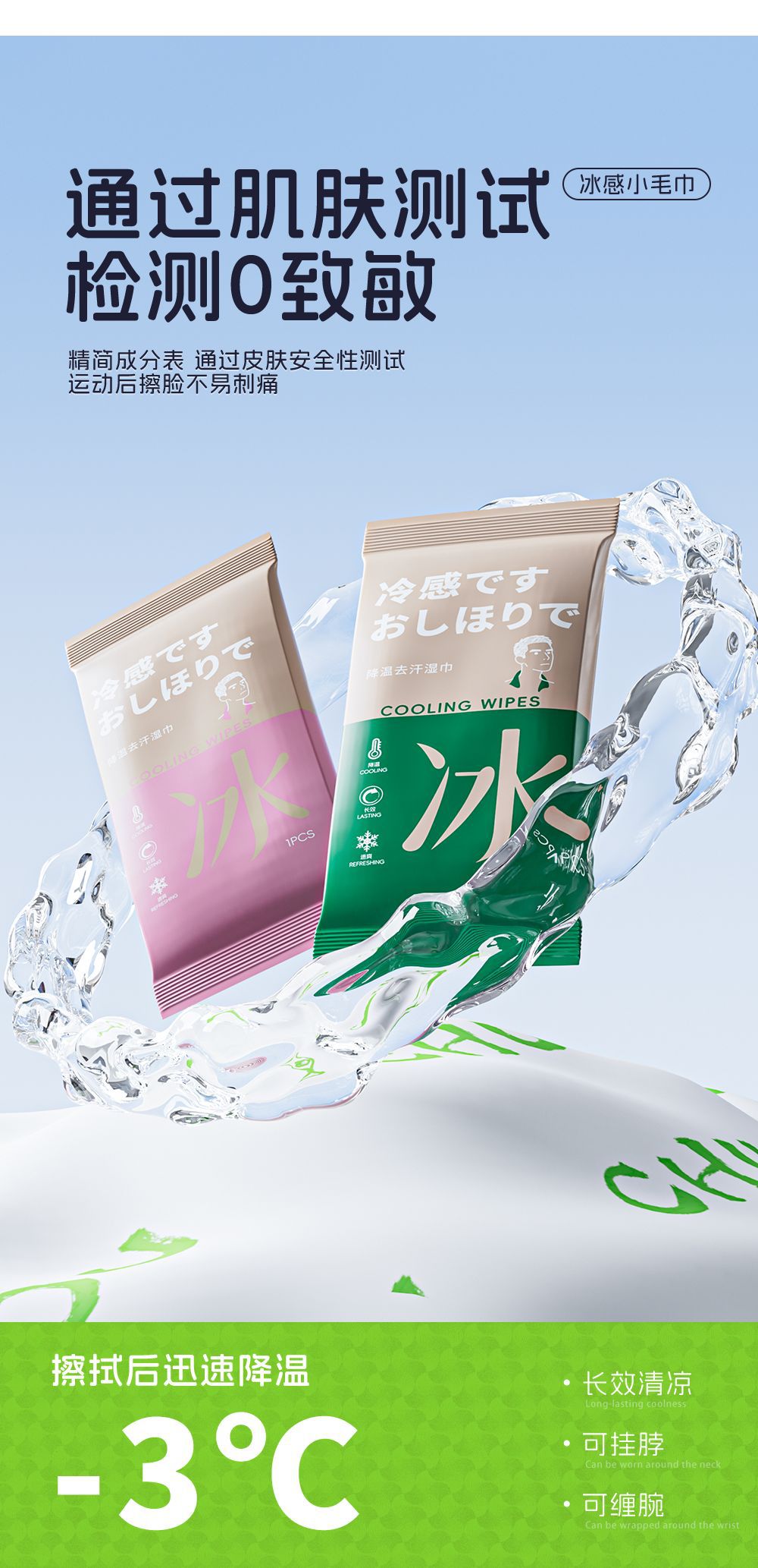 出兜加厚加大冷感湿巾--夏日降温清凉湿巾小包随身装便携冰感提神运动湿巾纸