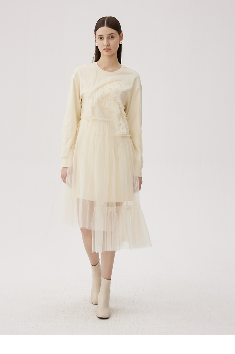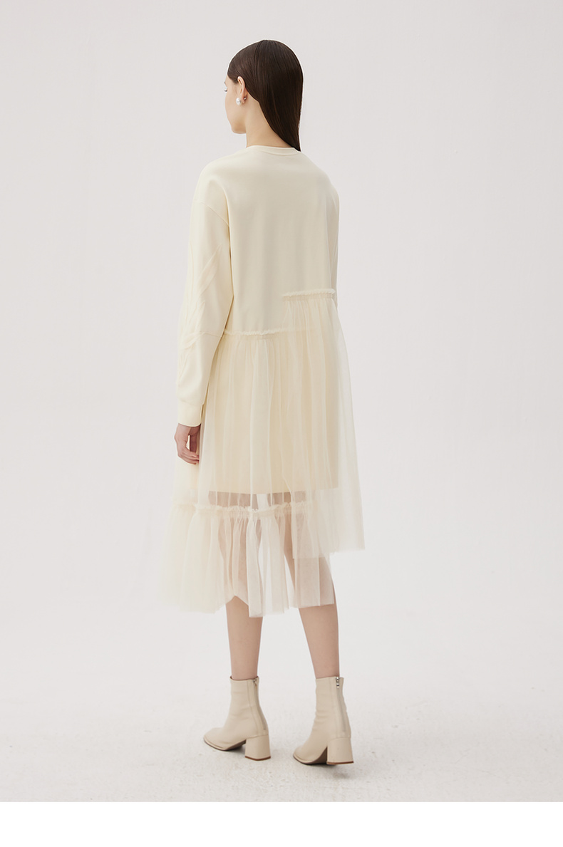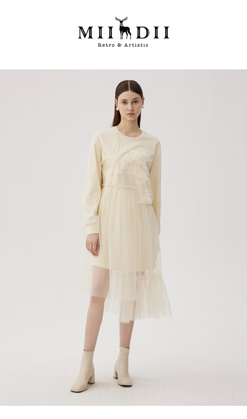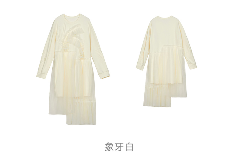 谜底拼接式卫衣裙长袖2024秋季新品简约浪漫圆领中长裙243ML1203