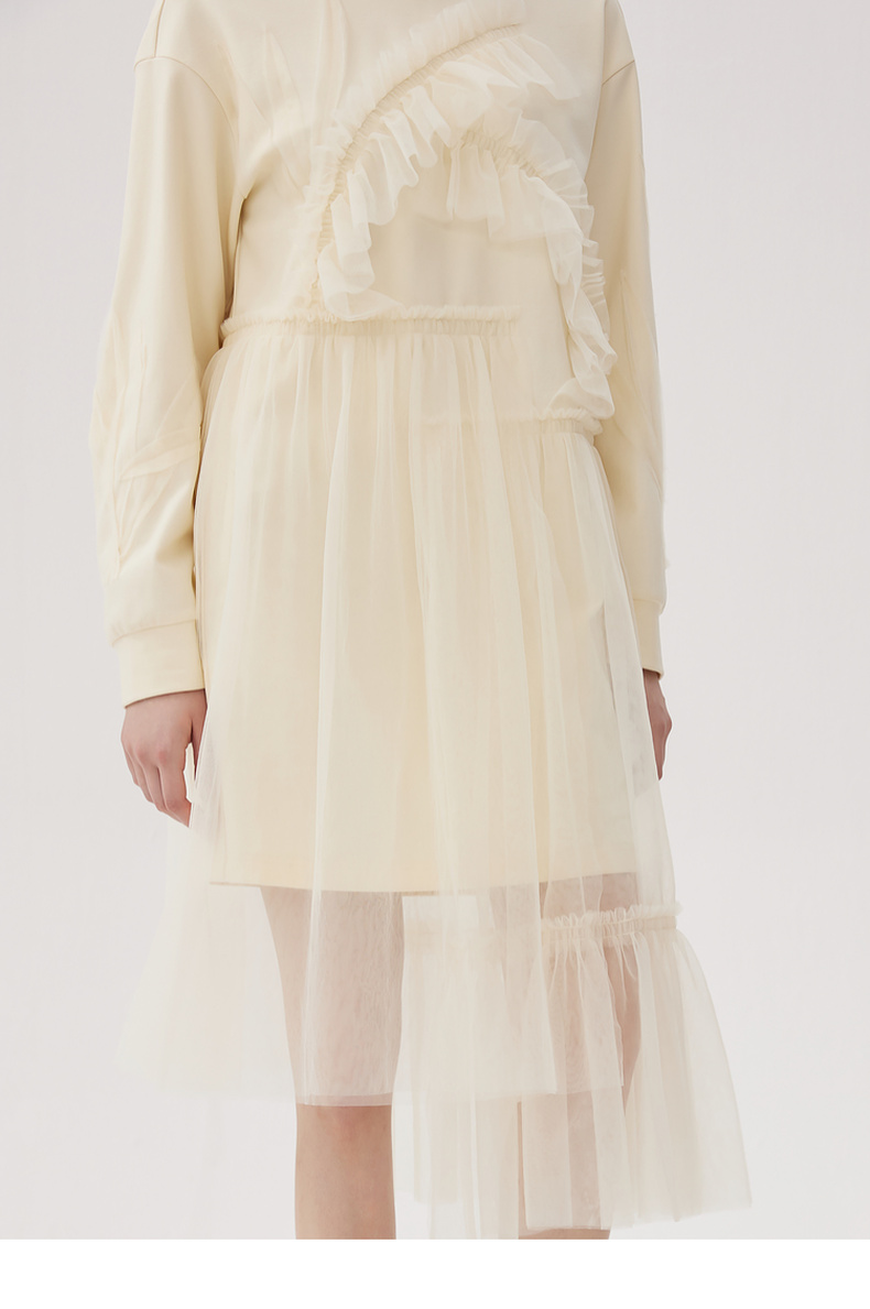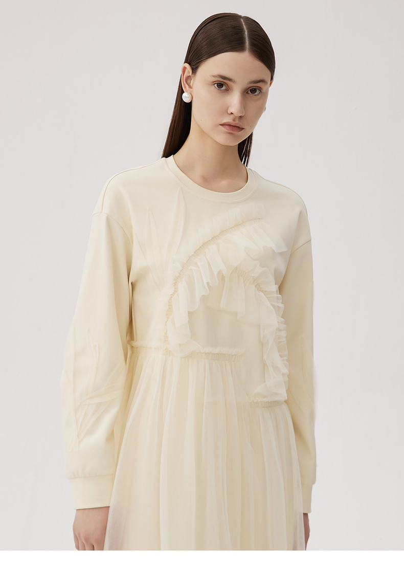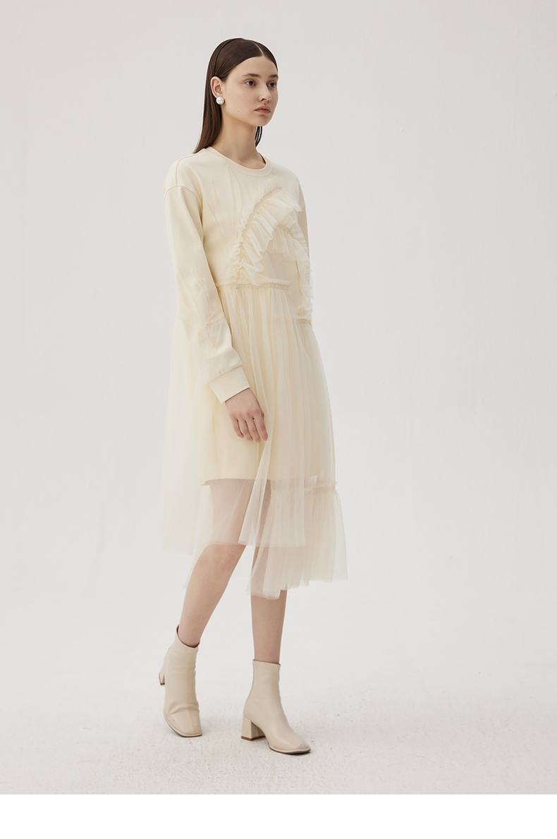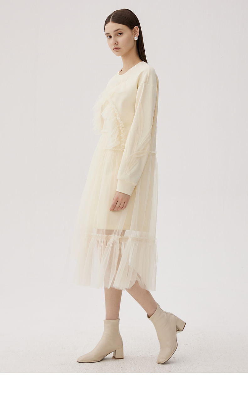 谜底拼接式卫衣裙长袖2024秋季新品简约浪漫圆领中长裙243ML1203