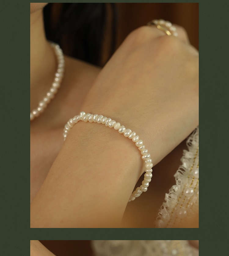 Oflye潮流饰品 法式天然不规则珍珠手链女ins小众设计感简约复古手环