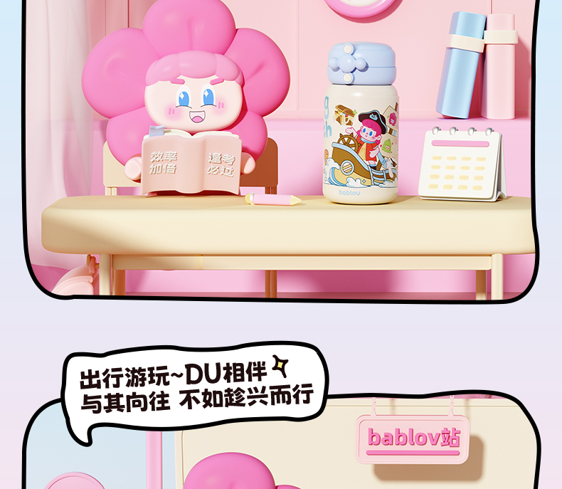 - BABLOV关注中国人的饮水健康,更不断探索未知可能性,专注于新生代自我个性表达,创造玩味新潮的产品体系。希望将水杯带入Z世代年轻人的生活,传递更多“饮”响力。