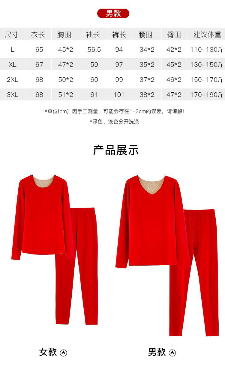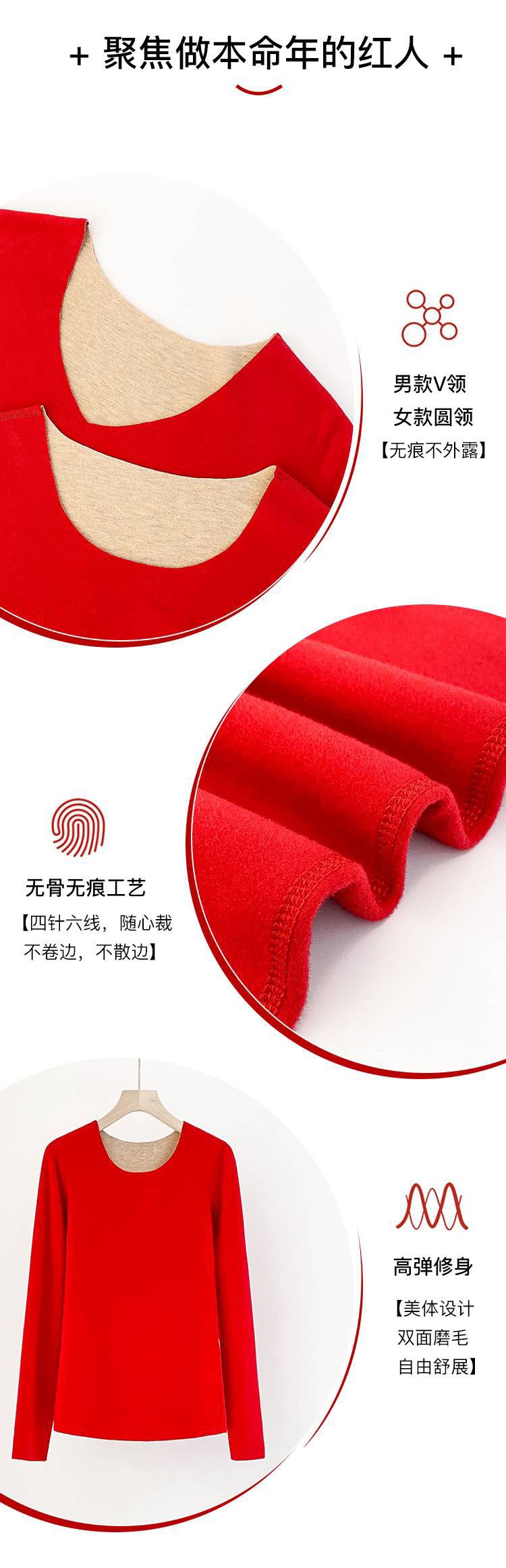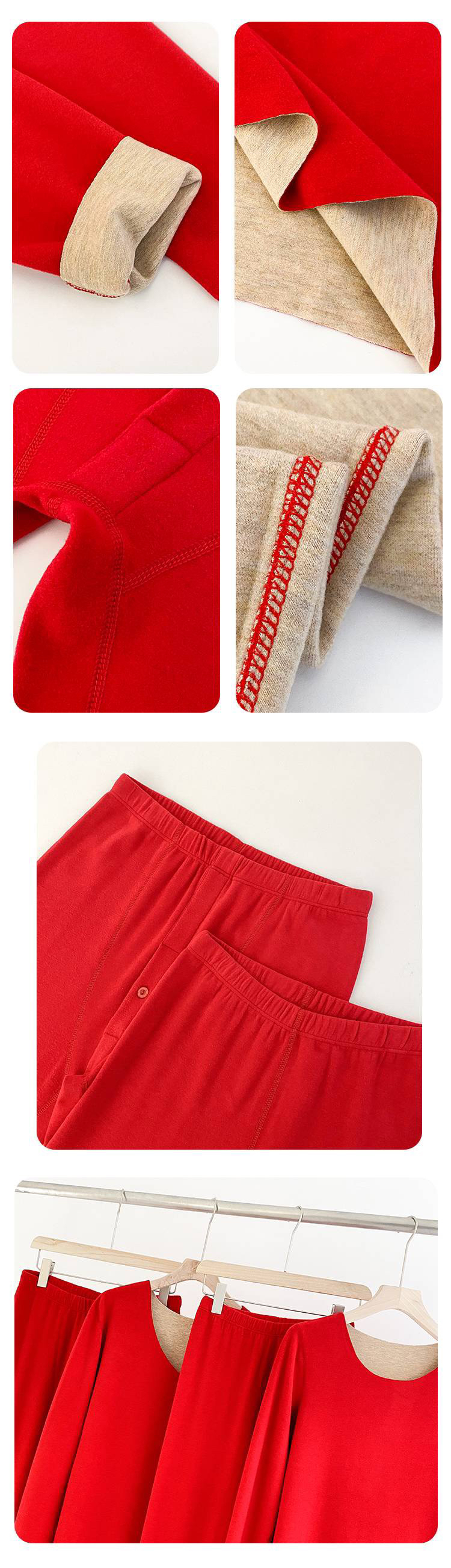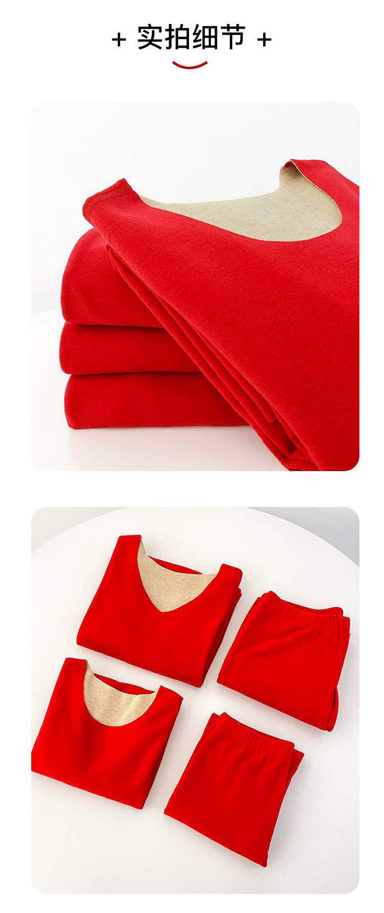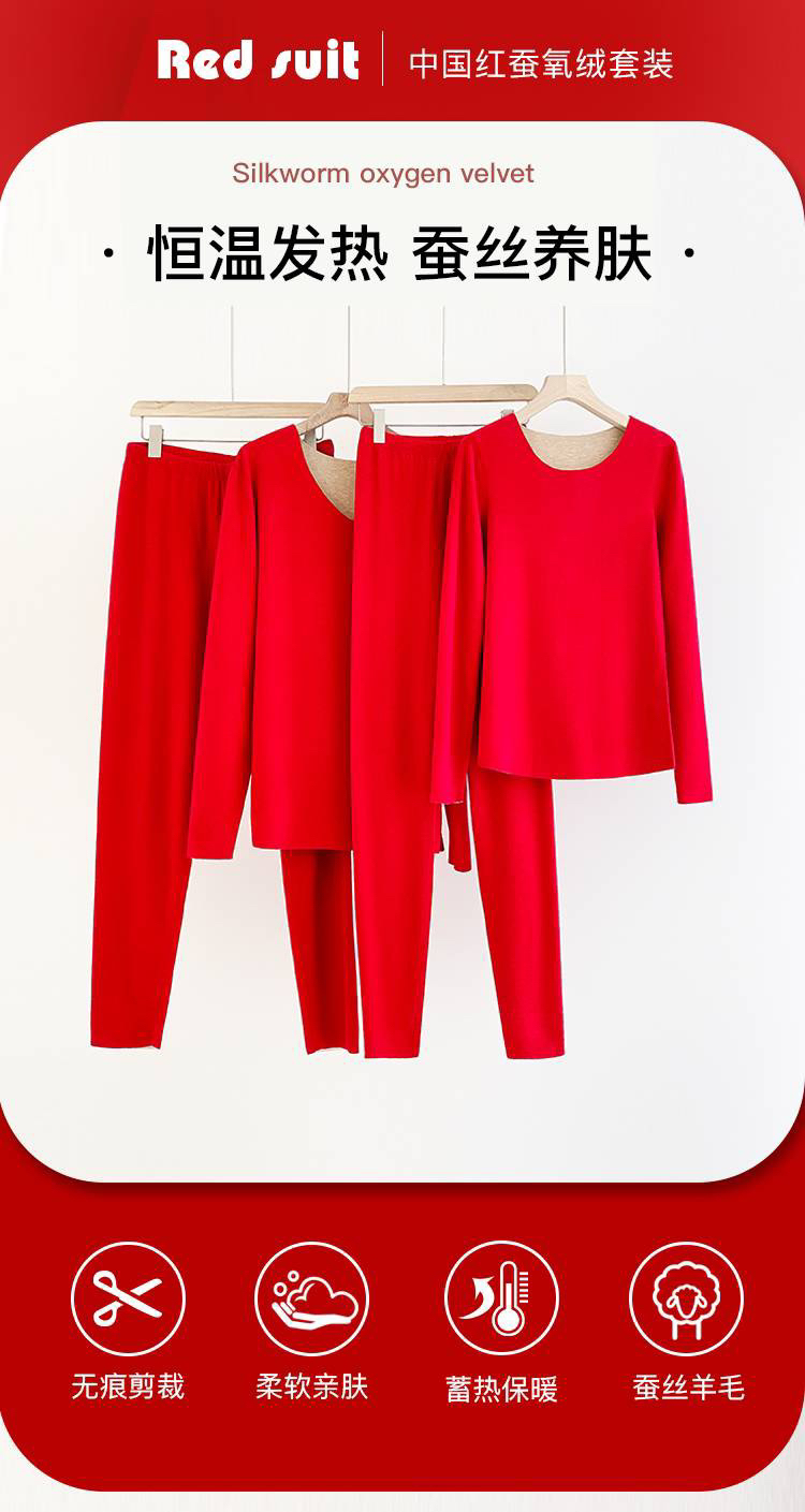 【鸿运吉祥】德绒男女成人款新年红秋冬内衣套装