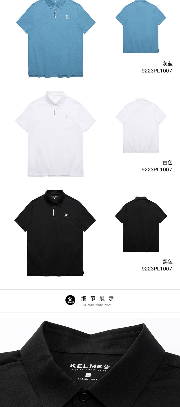 KELME卡尔美短袖男2022新款夏季纯色T恤运动翻领POLO衫9223PL1007
