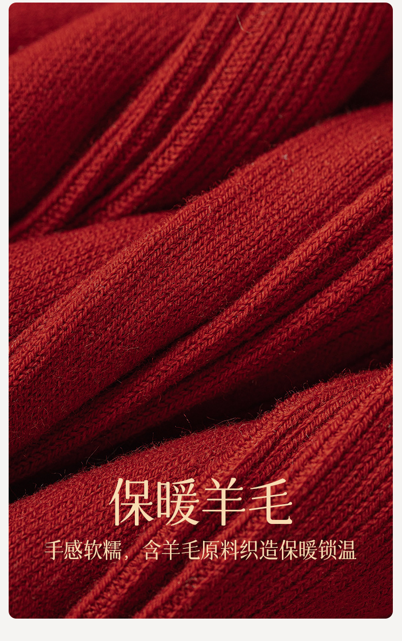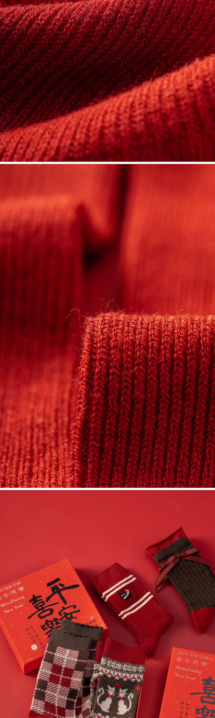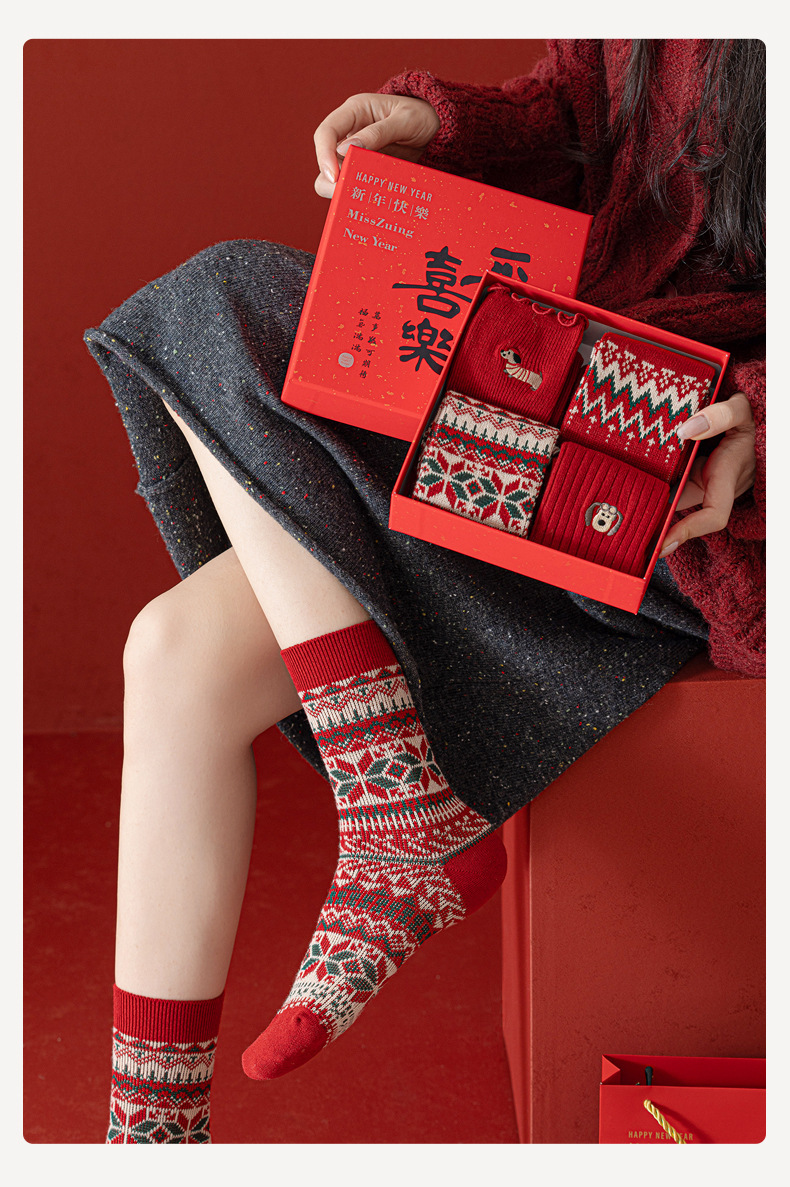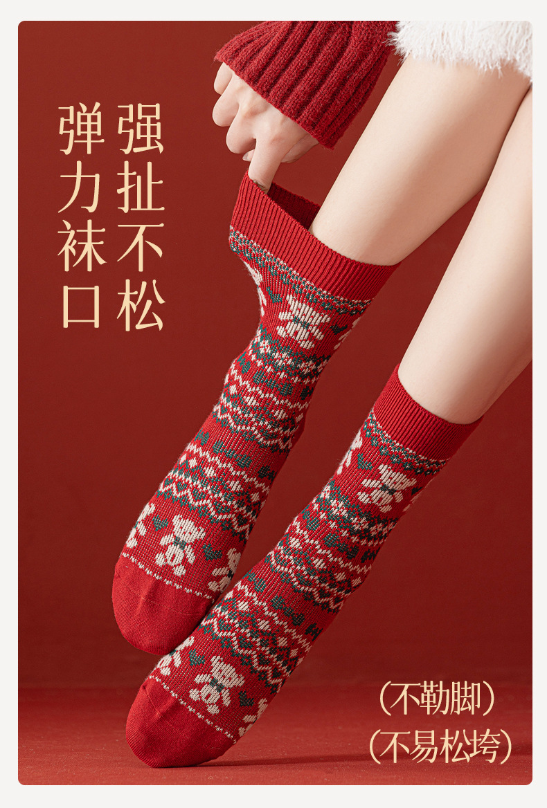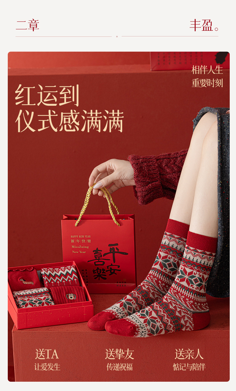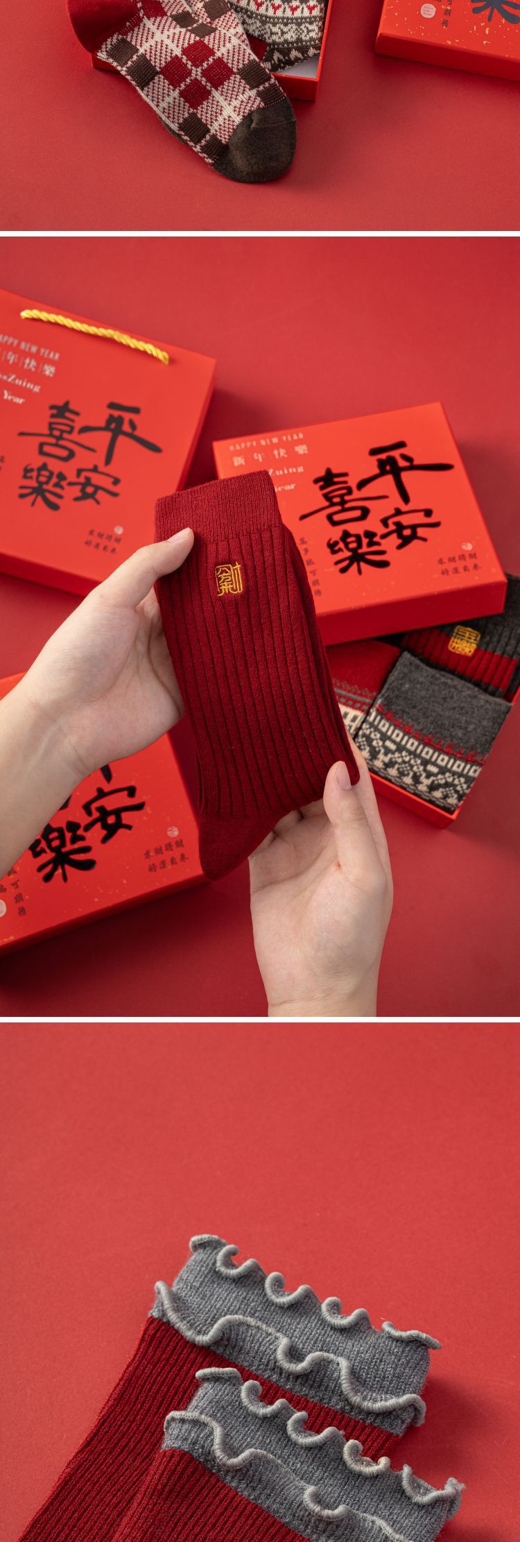 礼盒红袜子女秋冬羊绒袜加厚保暖双针无线头新年礼盒装红色中筒袜