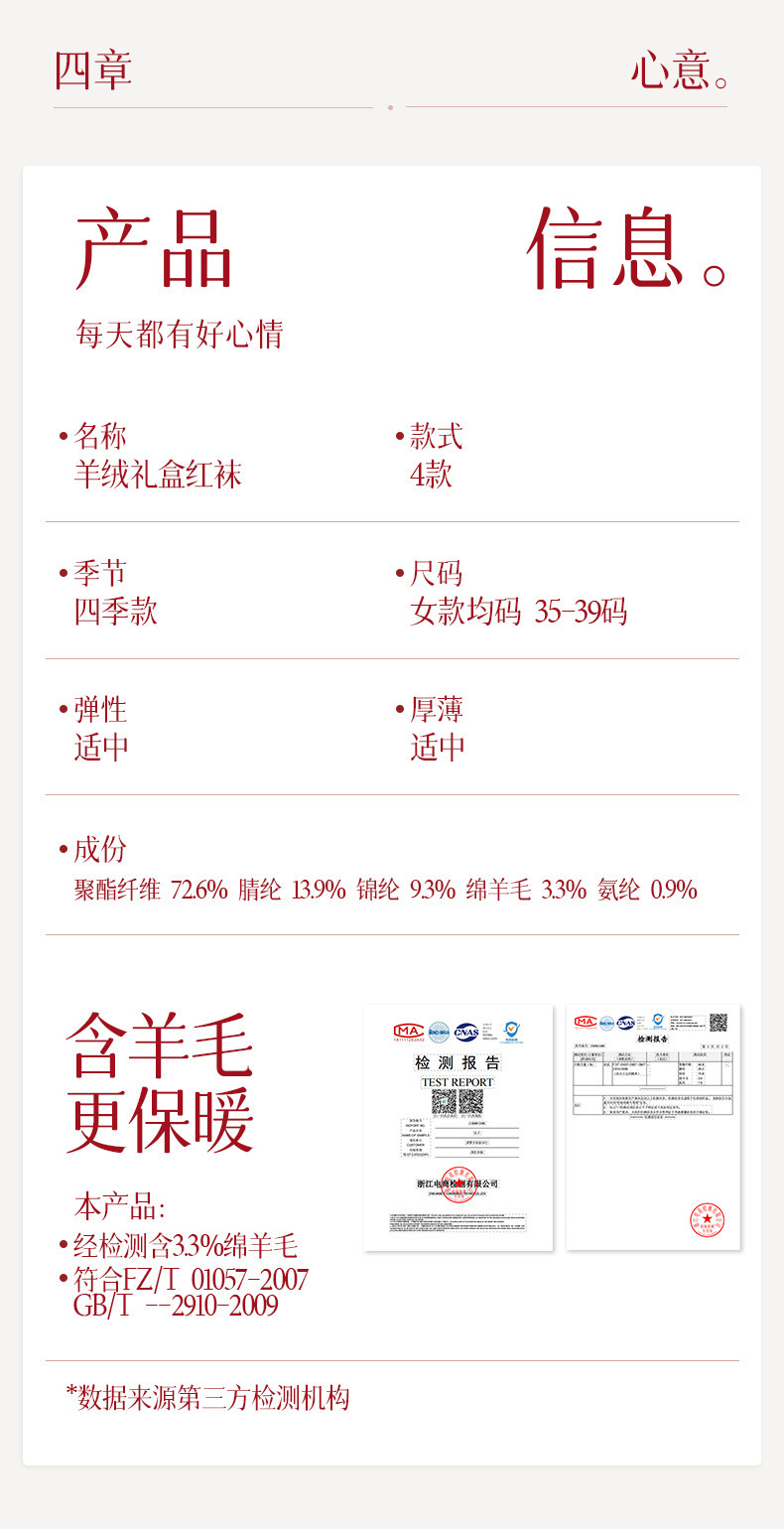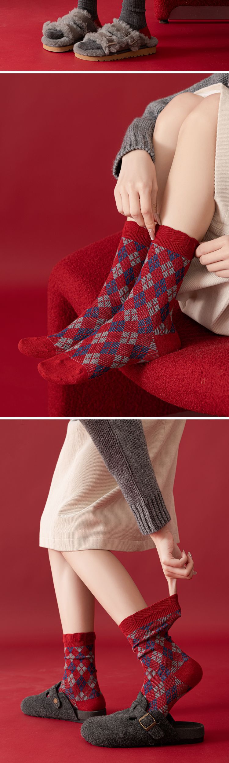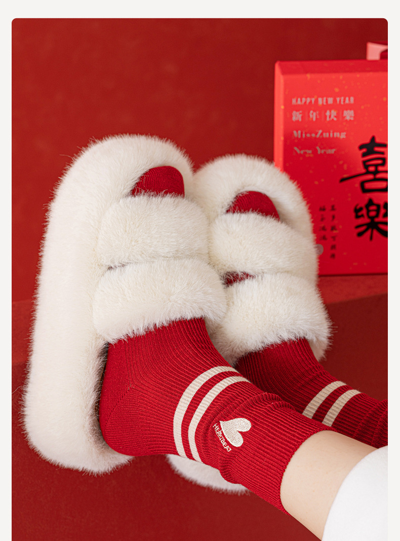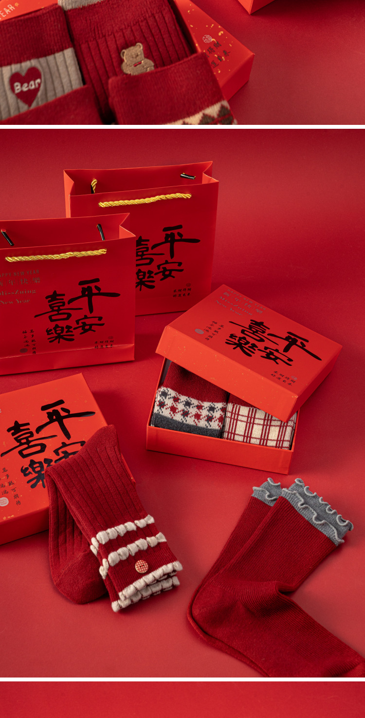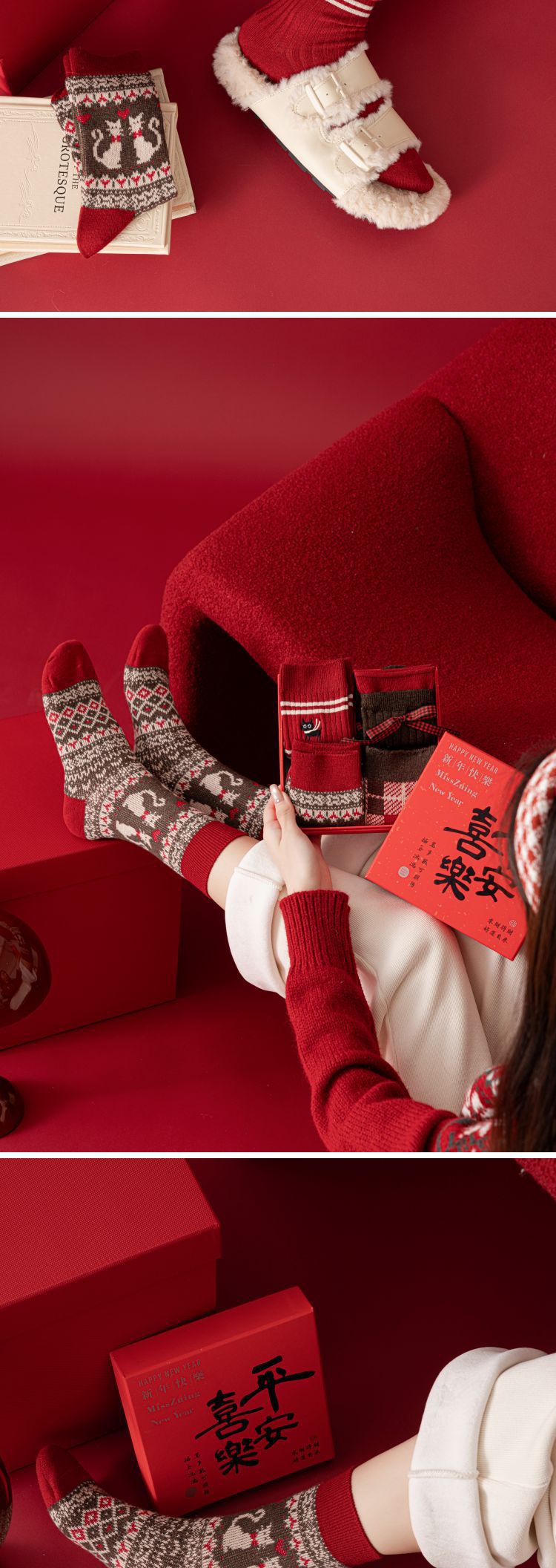 礼盒红袜子女秋冬羊绒袜加厚保暖双针无线头新年礼盒装红色中筒袜