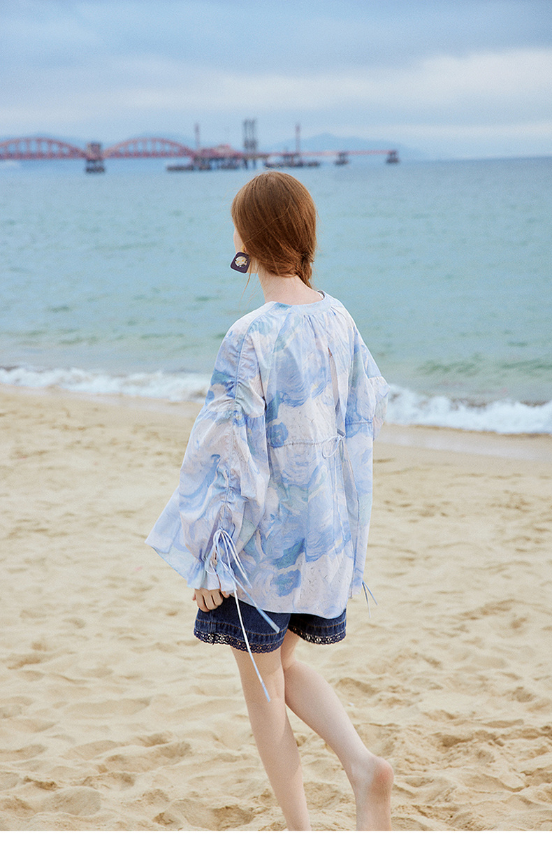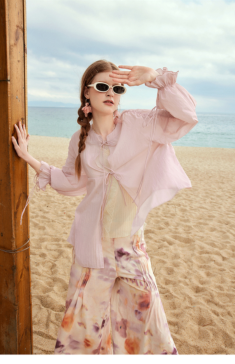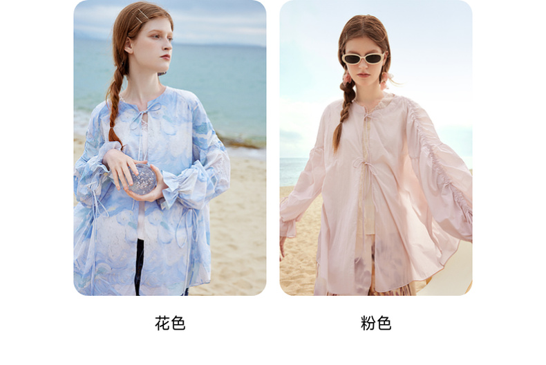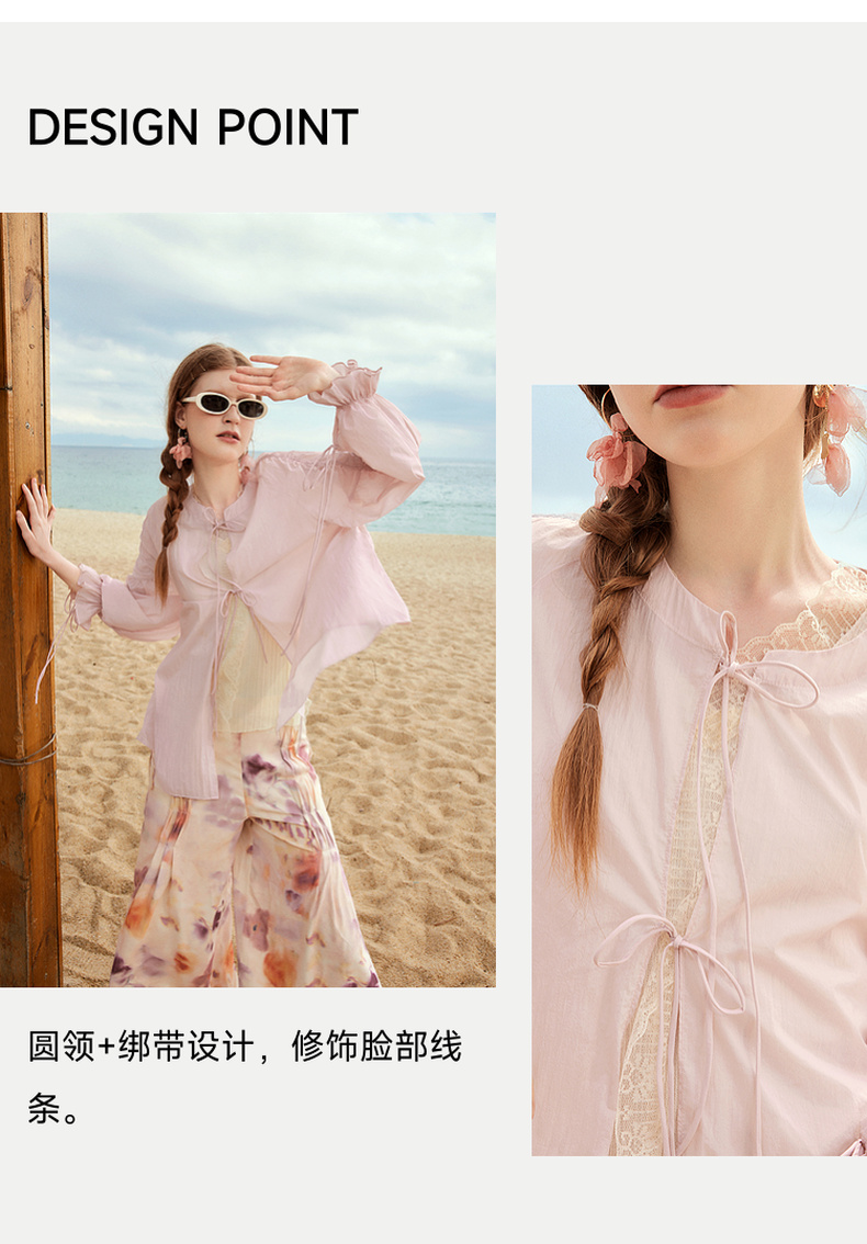 [沐光]防晒系列两三事浪潮之巅2024春新款绑带灯笼袖罩衫防晒外套
