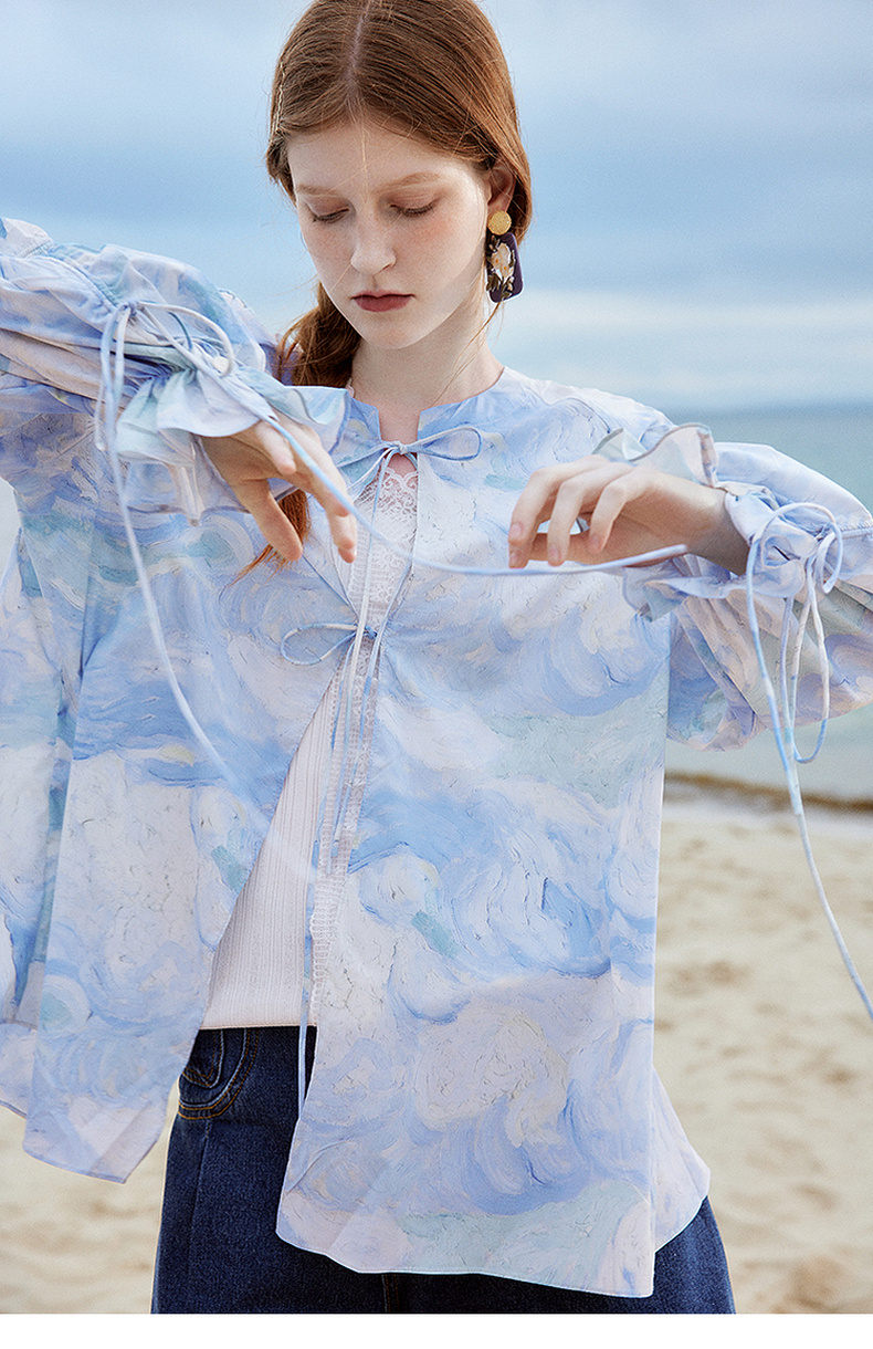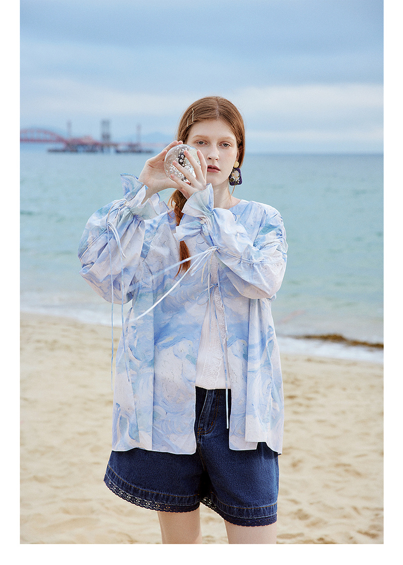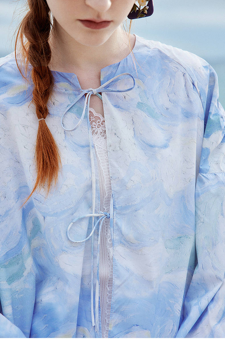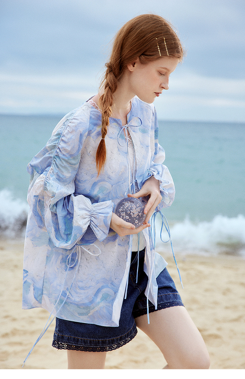 [沐光]防晒系列两三事浪潮之巅2024春新款绑带灯笼袖罩衫防晒外套