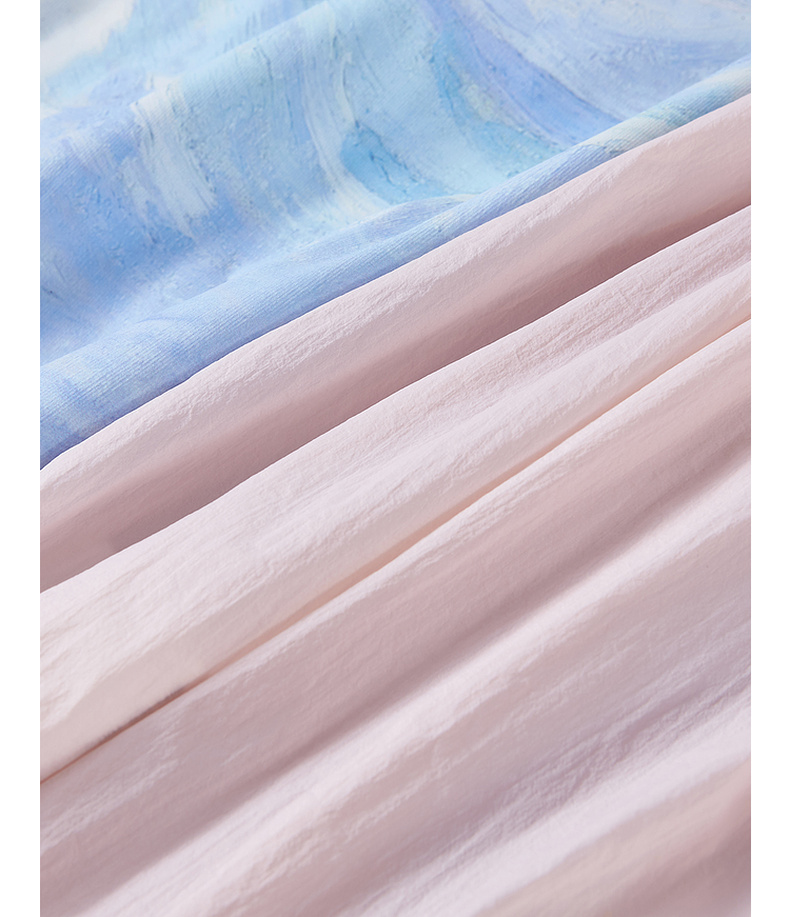 两三事 森灵绮梦 2025夏季新款小清新印花拼色绑带吊带裙连衣裙