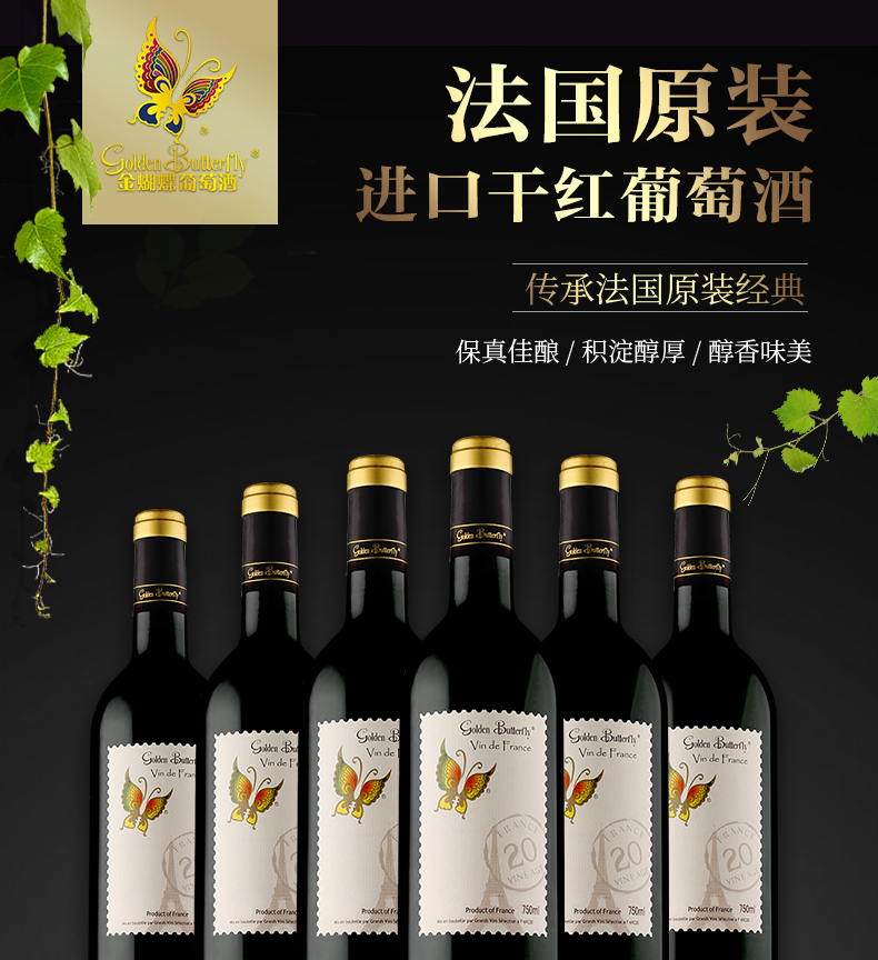 金蝴蝶20年树龄干红葡萄酒 750ml