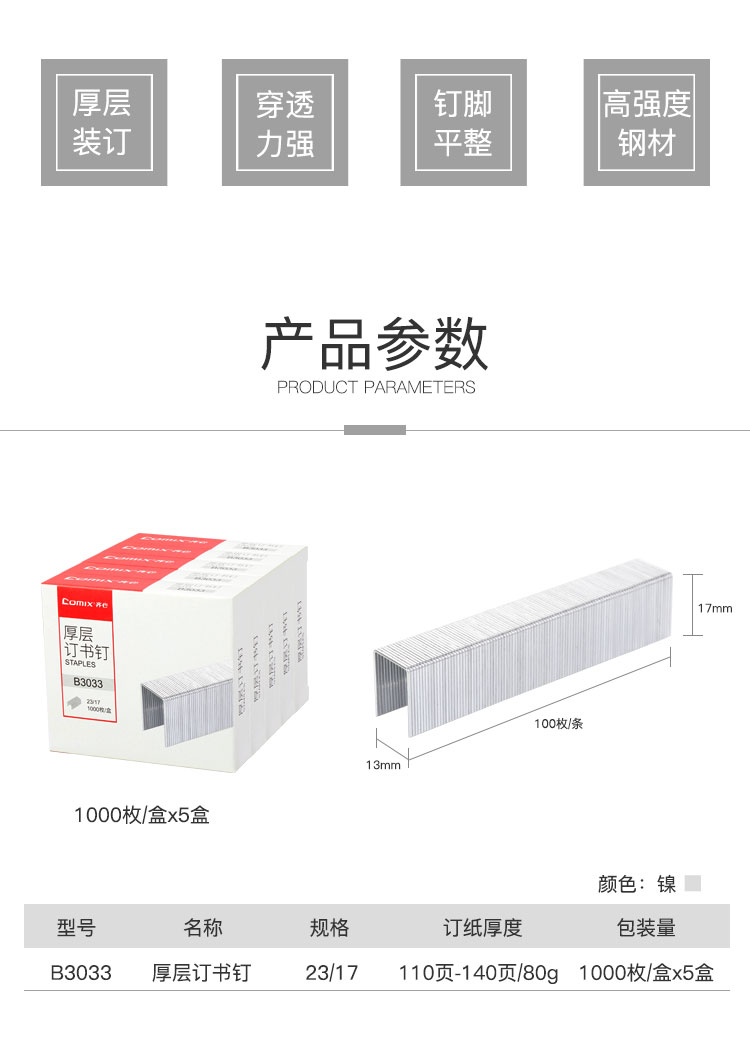 齐心订书针B3033(23/17)