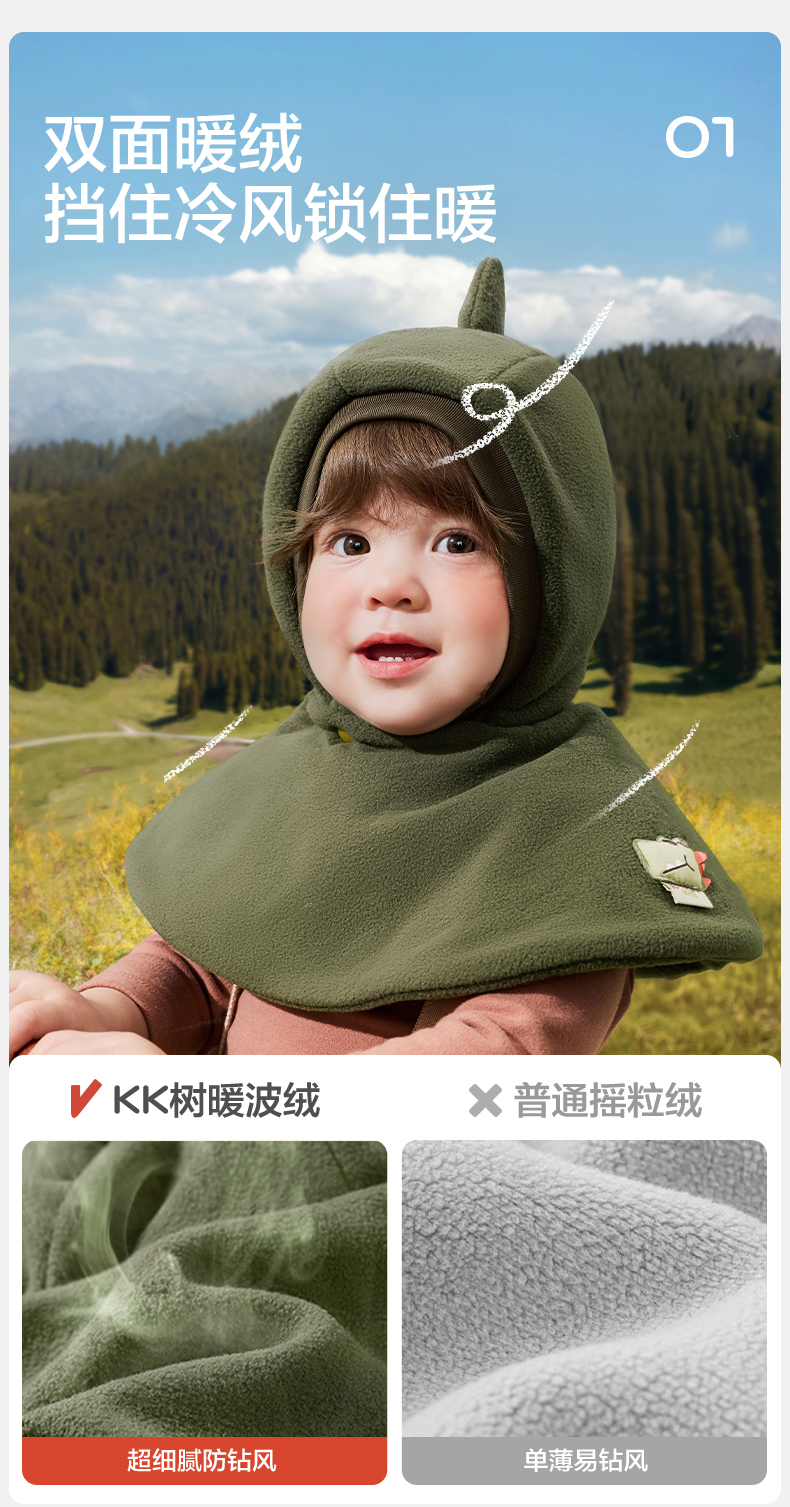 KK树宝宝帽子秋冬新款婴儿围脖一体男童女孩保暖护耳帽套头披肩帽小动物奇遇披肩帽