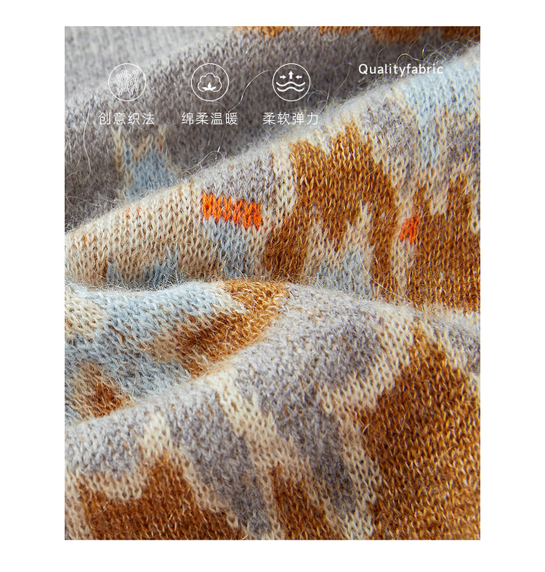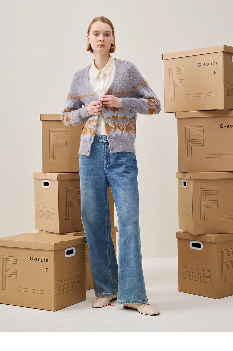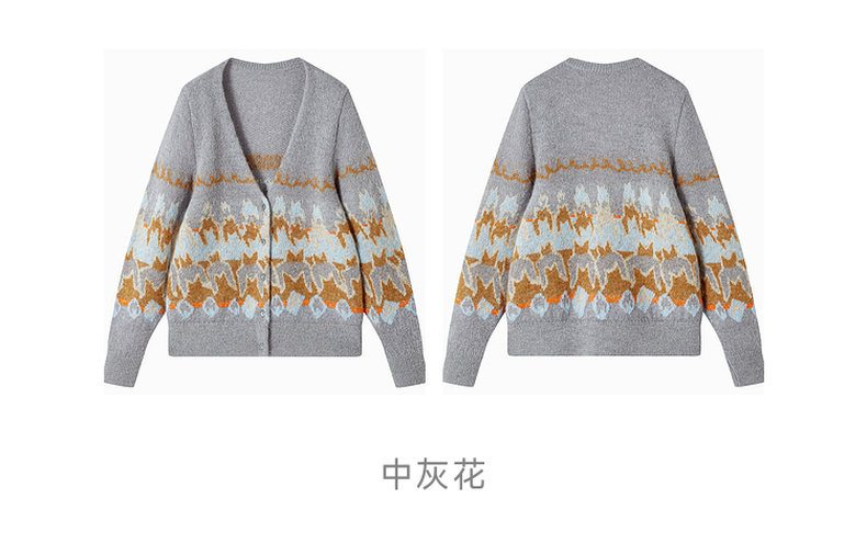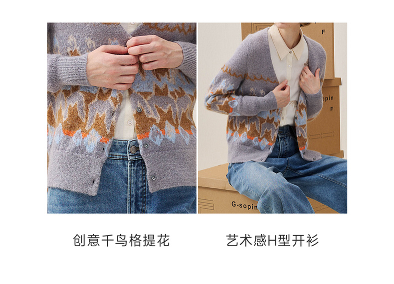 谜底V领针织开衫长袖2025冬季新品原创千鸟格提花毛衣女254MZ1902