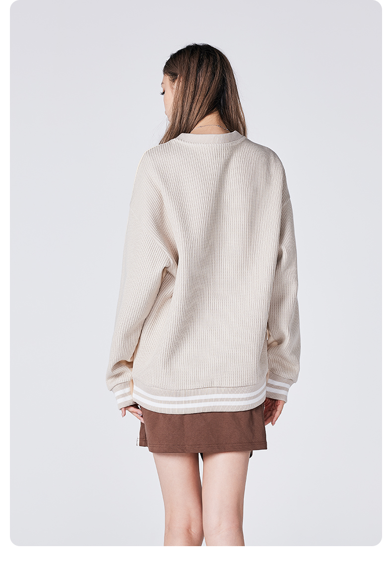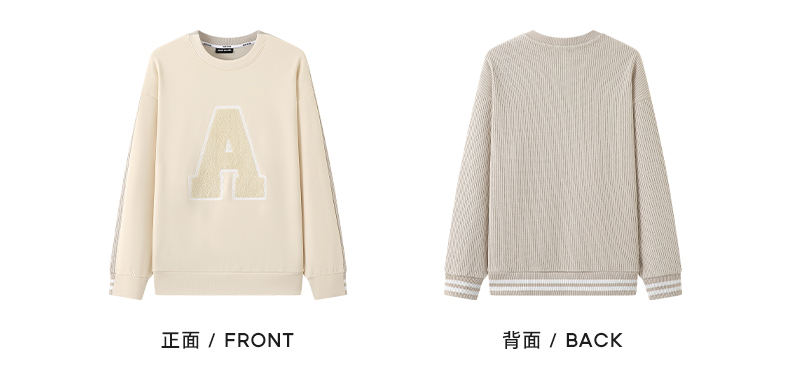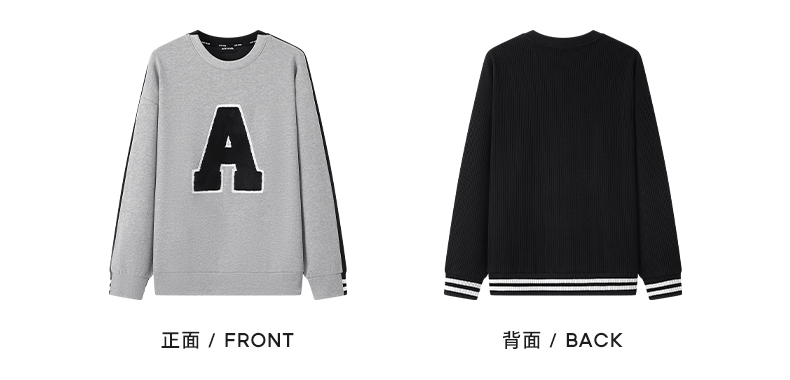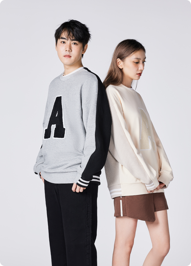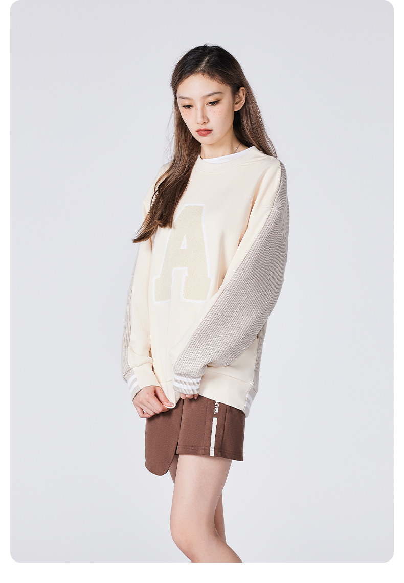 YKYB冬季上衣异材质拼接长袖套头高克重刺绣圆领落肩宽松卫衣潮牌