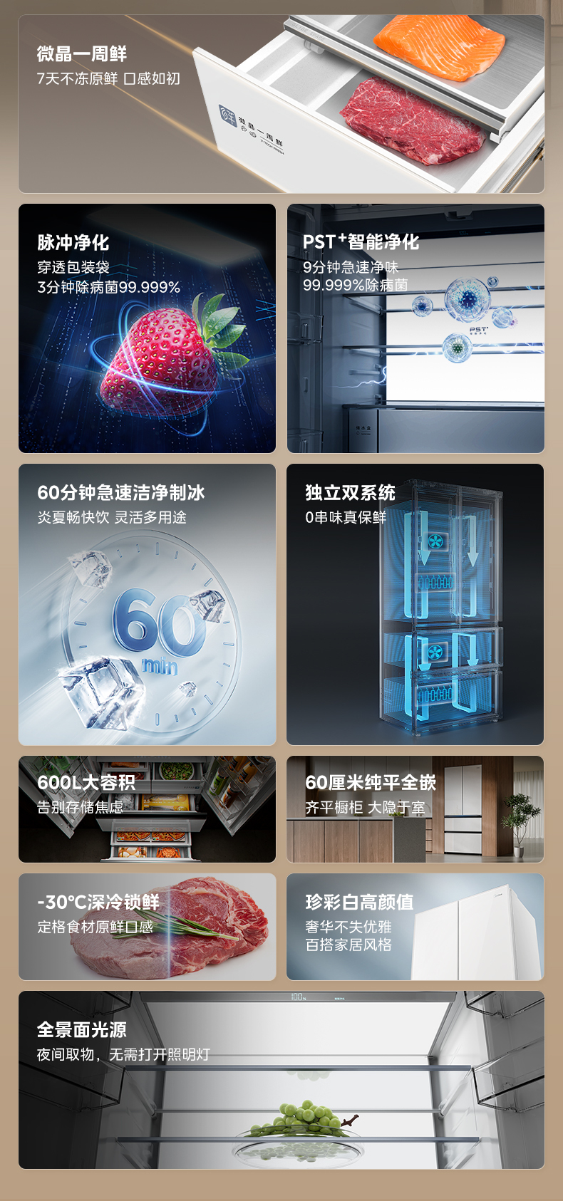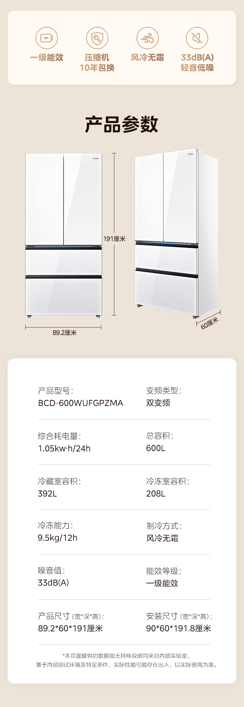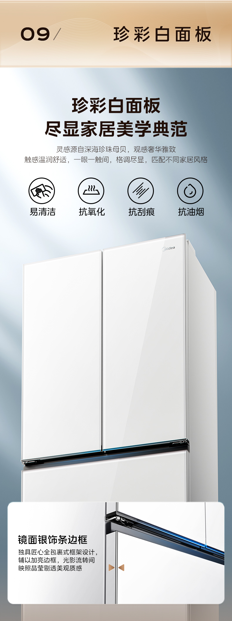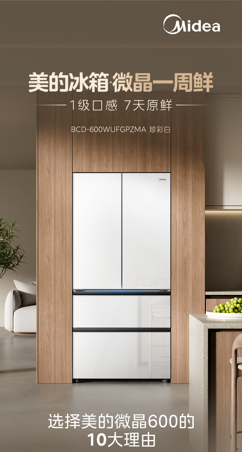 美的 冰箱 BCD-600WUFGPZMA 珍彩白