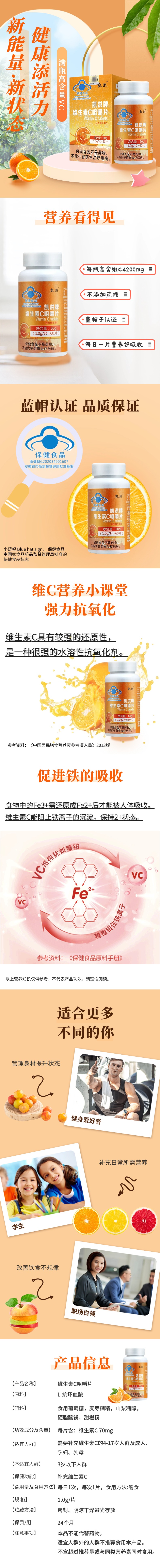 小橙瓶(临期优惠) 维生素C 健身良品高含量甜橙味VC咀嚼片60片/瓶