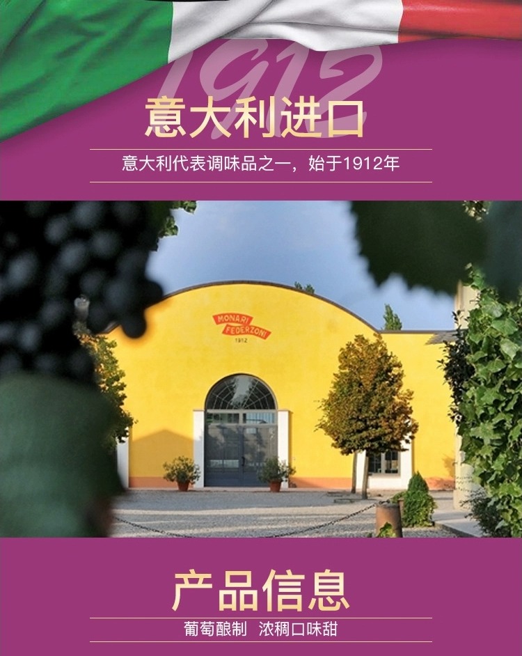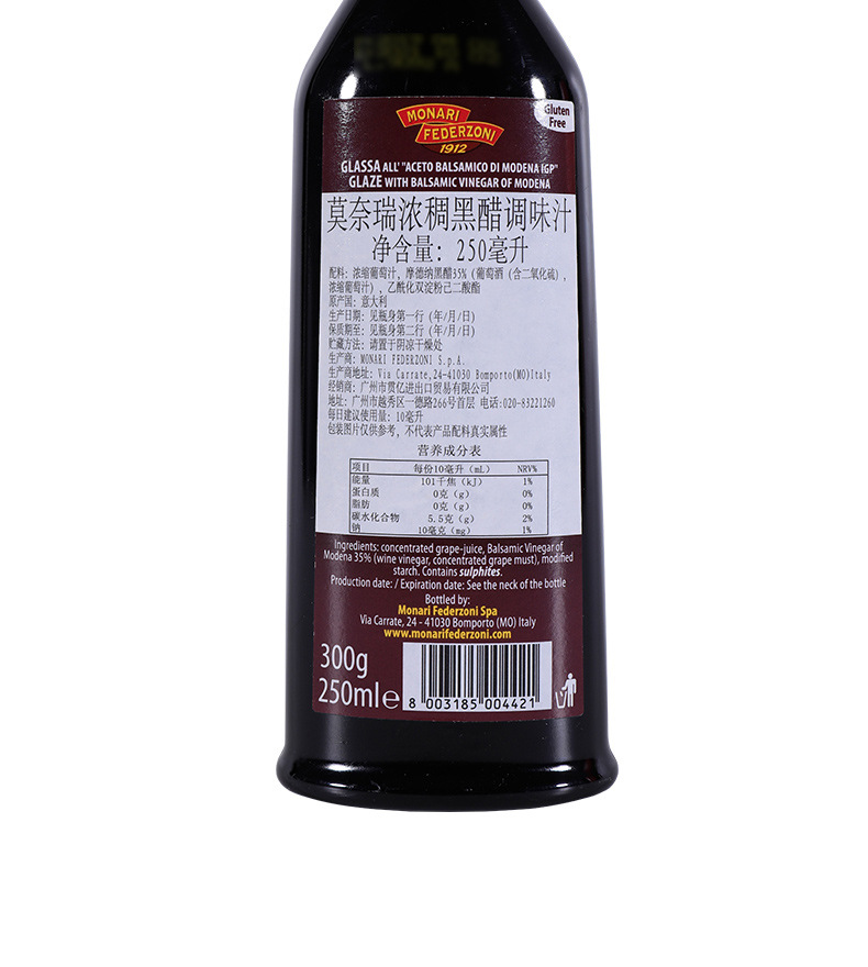 【中欧班列精选】 意大利莫奈瑞浓稠黑醋 原装进口酸甜牛排蘸酱浓缩黑醋 250ml/瓶