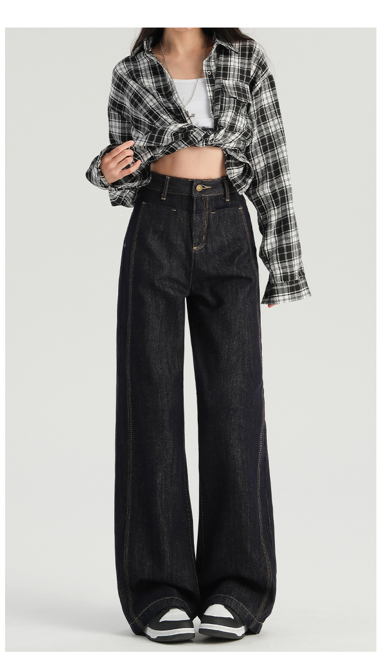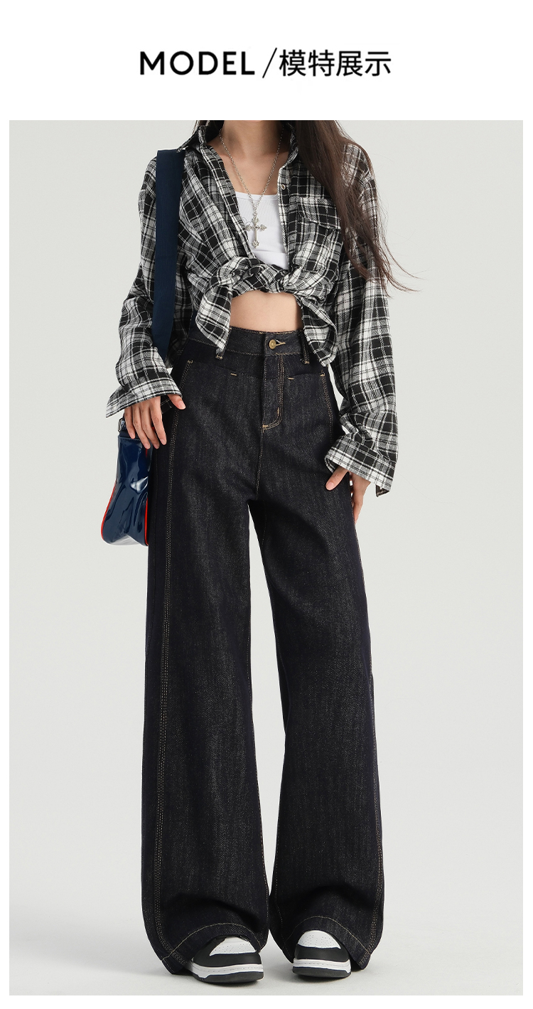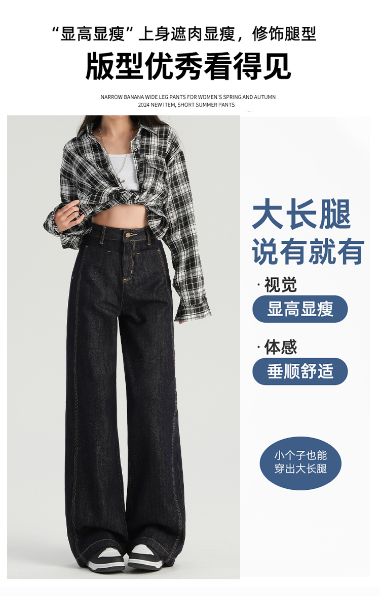 罗蒙春季女式牛仔裤高腰直筒宽松显瘦牛仔裤棉质水洗休闲百搭女长裤阔腿裤女