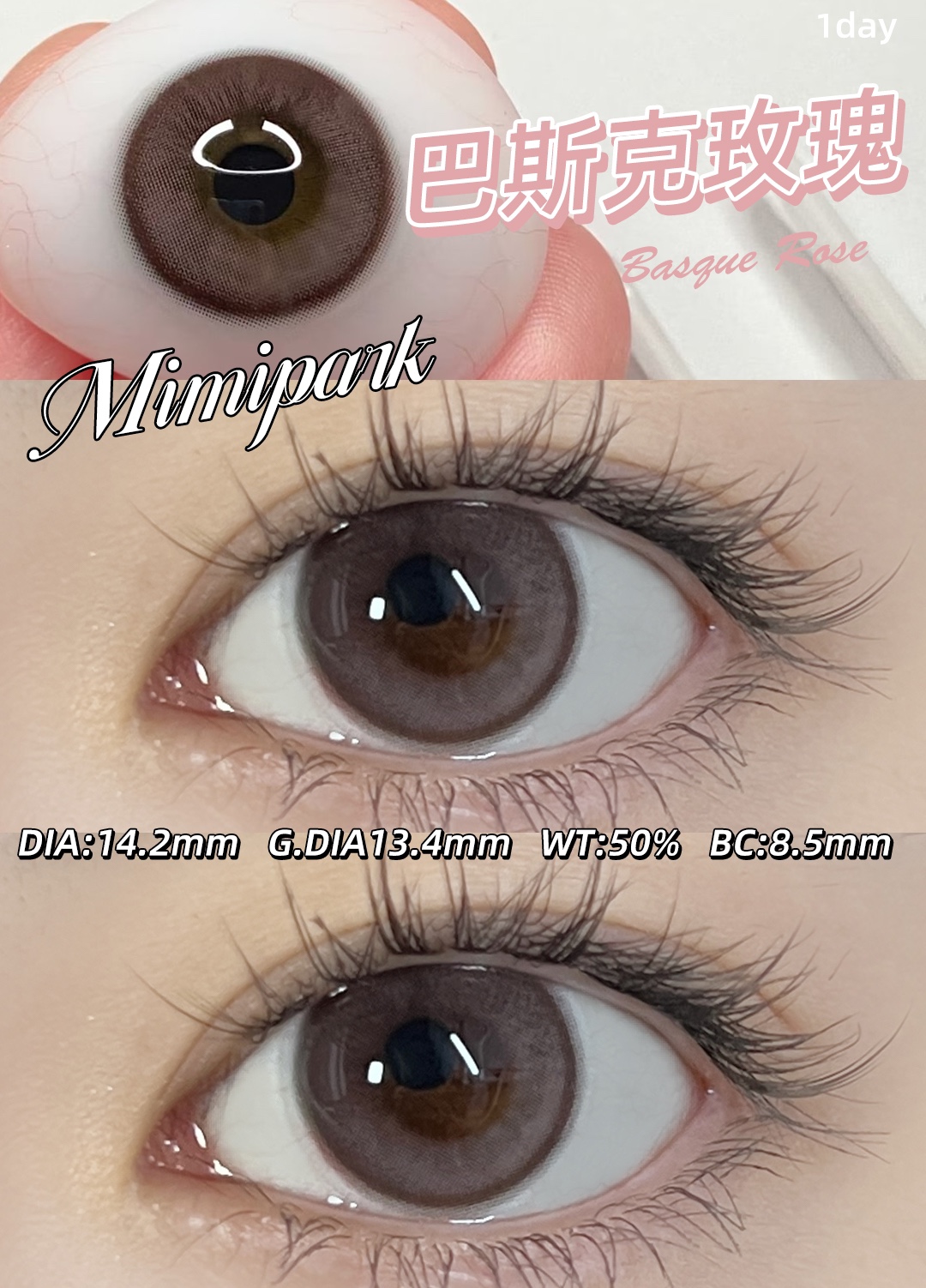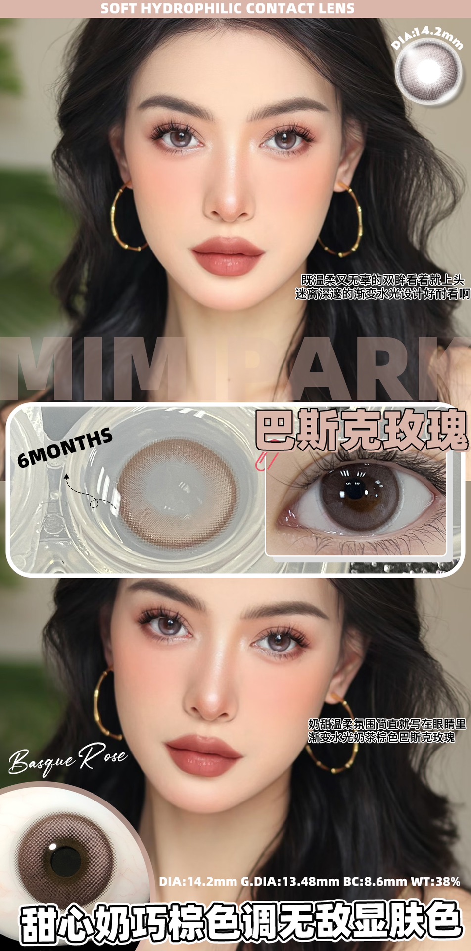 MIMIPARK 巴斯克玫瑰 半年抛 2片 14.2mm 参考着色 13.4mm 基弧 8.6 含水 38% 新锐国货