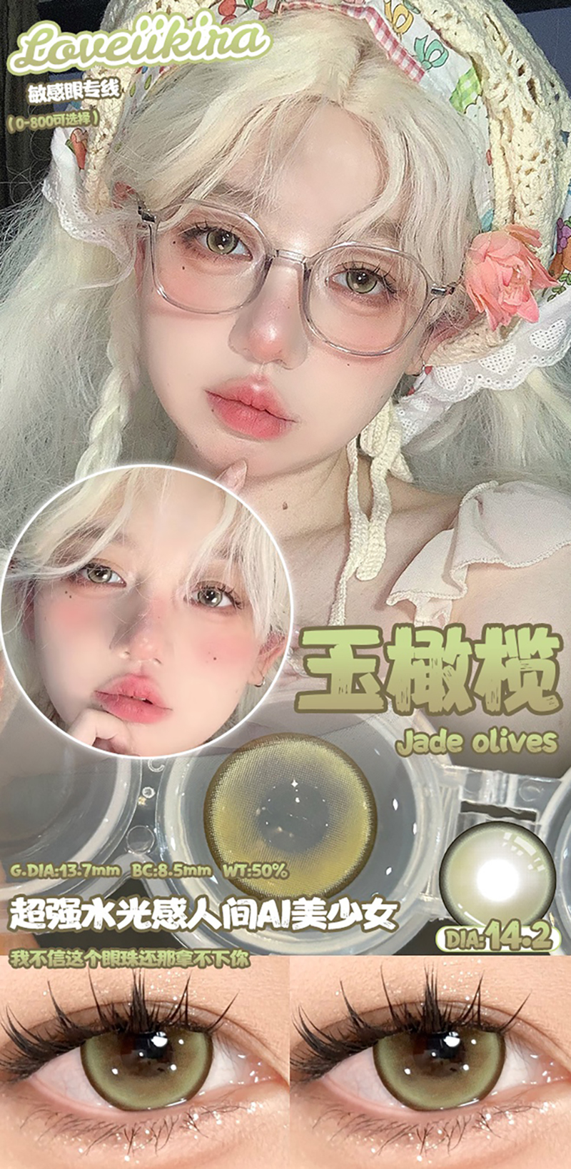 艾吉拉Loveiikira 玉橄榄 日抛 十片 14.2mm 参考着色13.7mm 基弧8.5 含水50% 新锐国货
