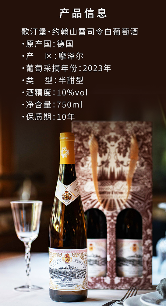 爆单中!!【前500名买整箱多送2瓶+送电动开瓶器+送2支高脚杯】【德国原瓶进口】雷司令半甜白葡萄酒 10%vol 750ml/瓶