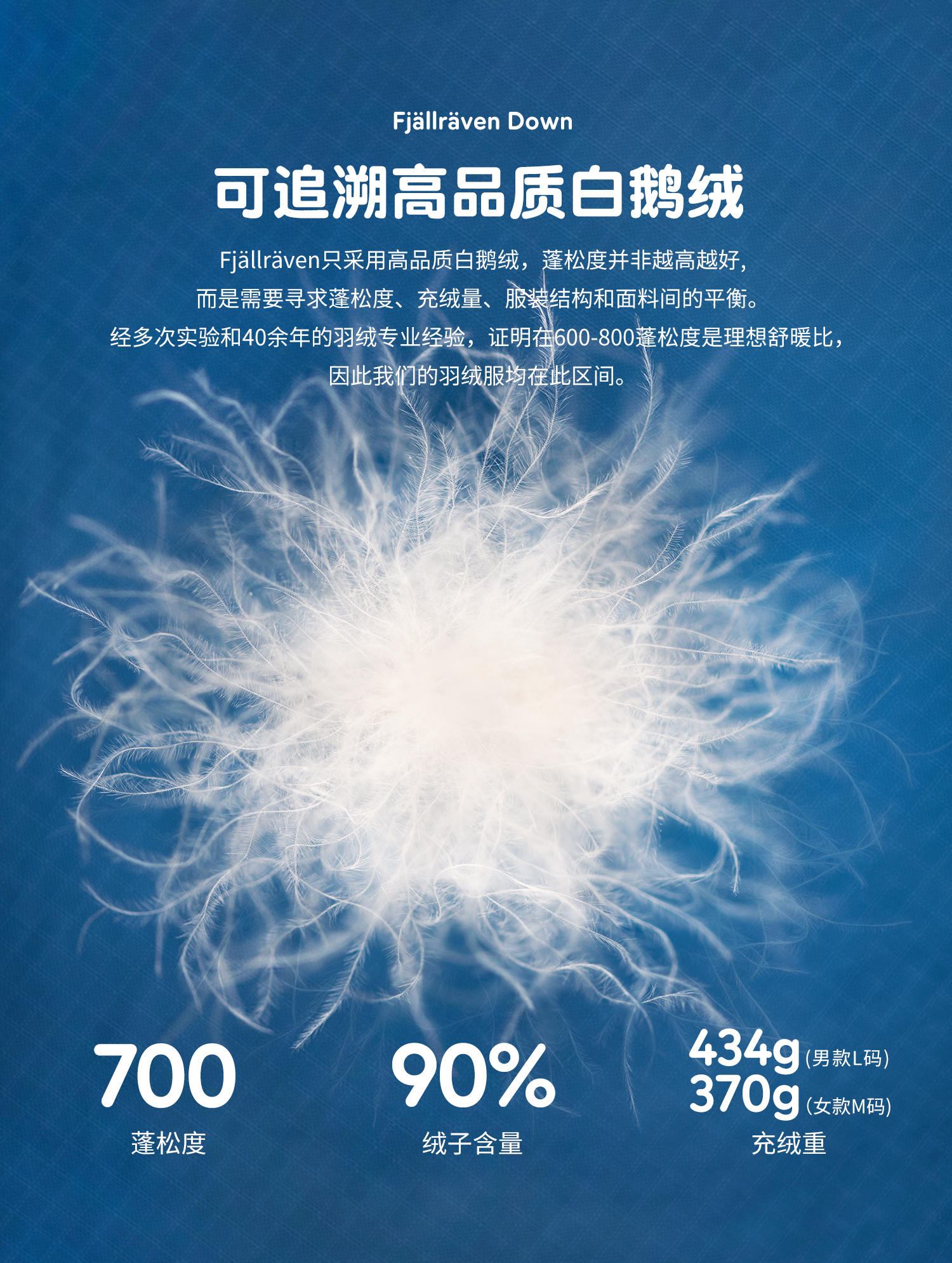 【男女款】Fjallraven北极狐防风DWR防泼保暖白鹅绒羽绒服89995