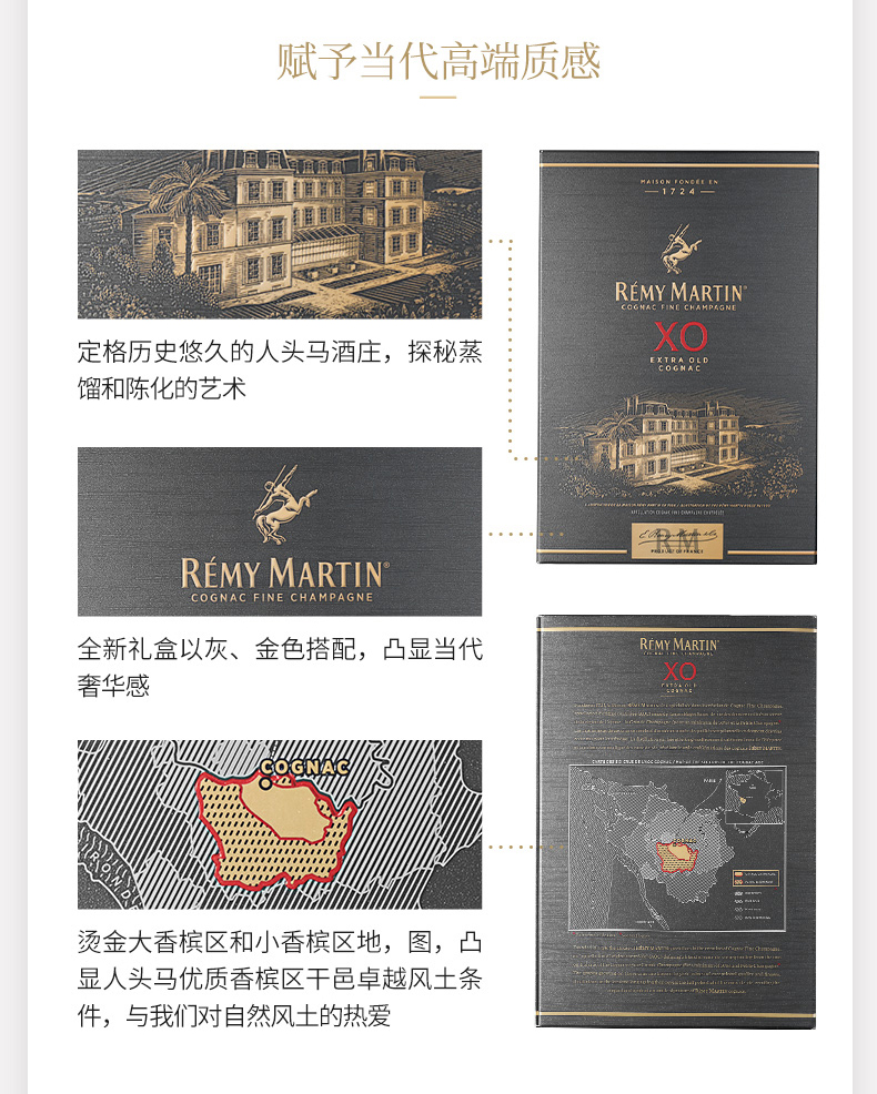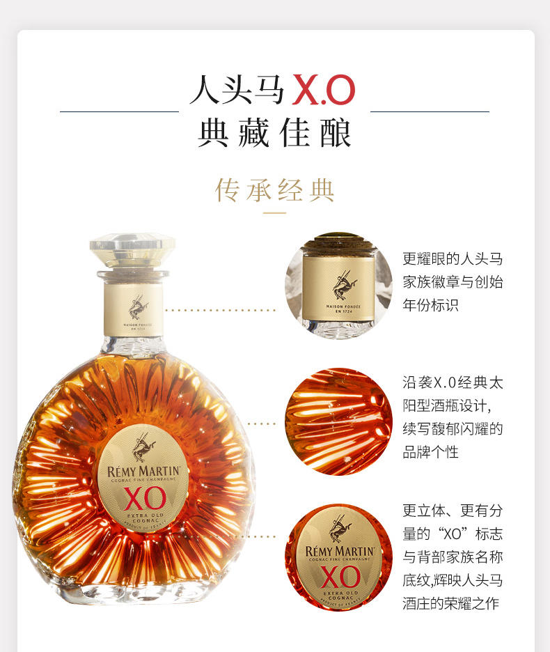人头马XO干邑白兰地700ml 优质香槟区干邑白兰地