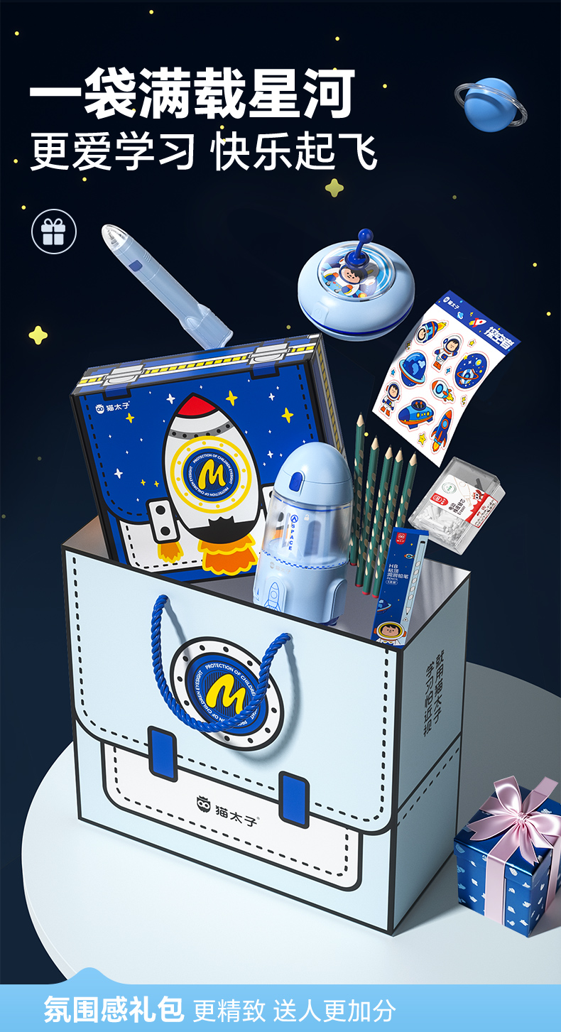 猫太子电动文具套装礼盒卷笔器套装小学生一二三年级学习用品生日礼物幼儿园儿童节开学大礼包男孩女孩礼盒