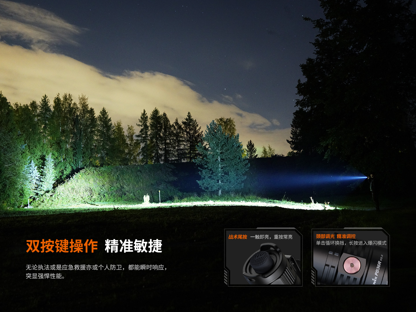 Fenix PD36R V2.0 强光远射USB直充手电筒户外运动1700流明小直筒