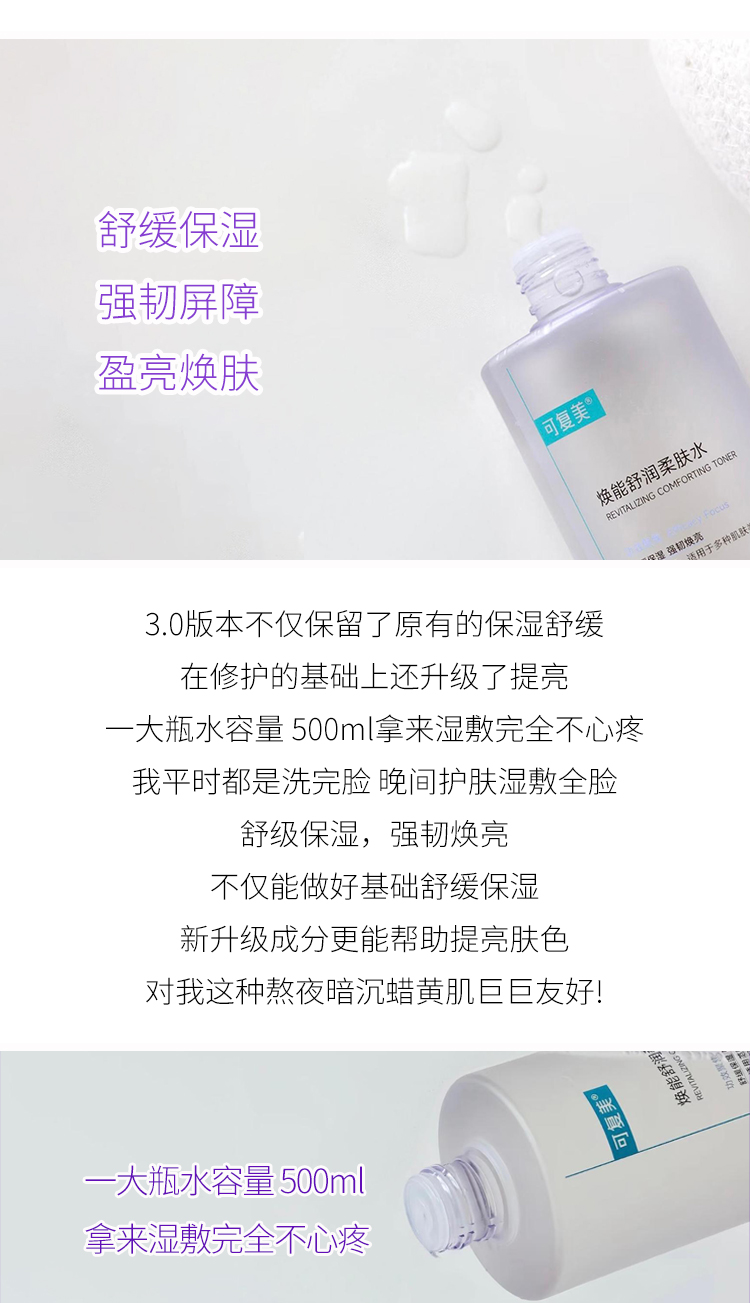 新版 可复美保湿柔肤水500ml 防伪可查