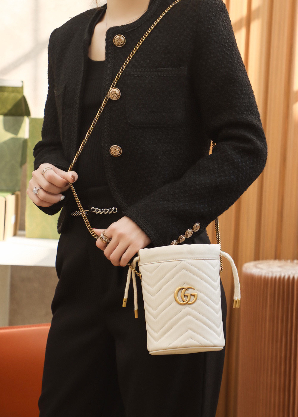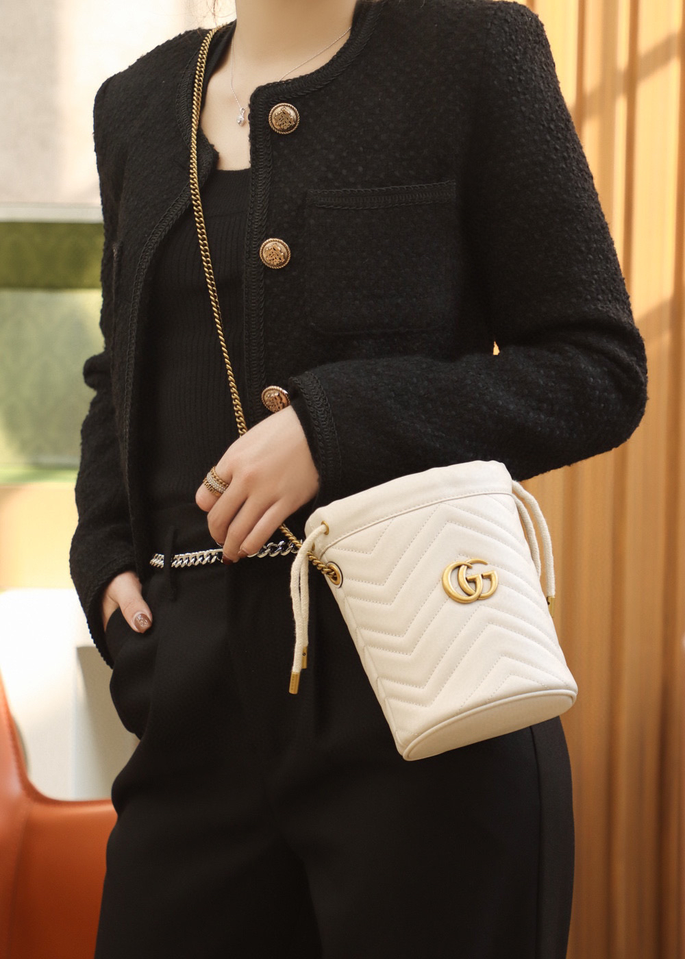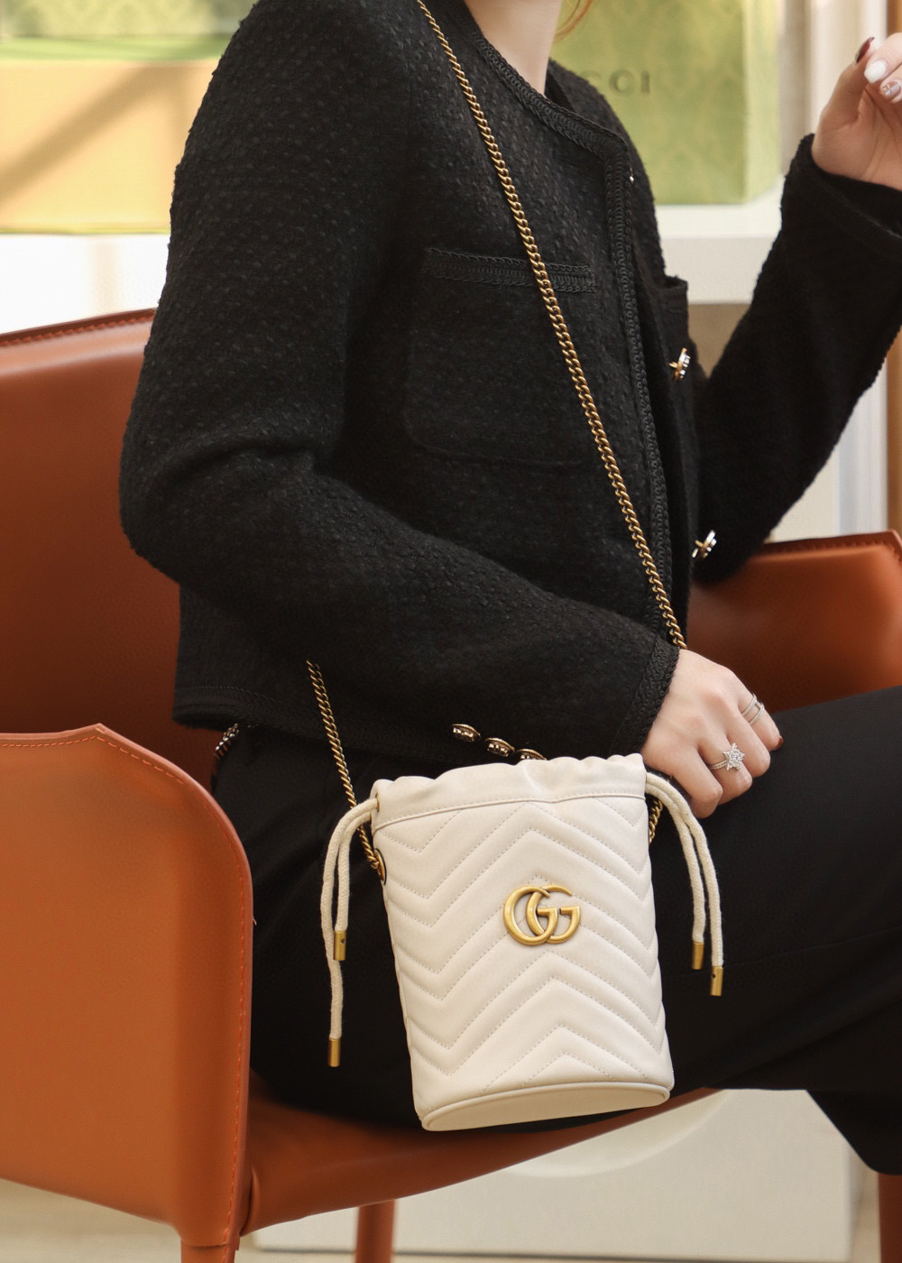 包身正面以经典的姿态𝐆𝐆标志✅五金呈现,