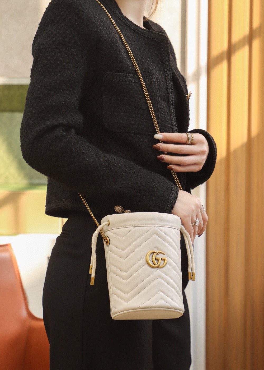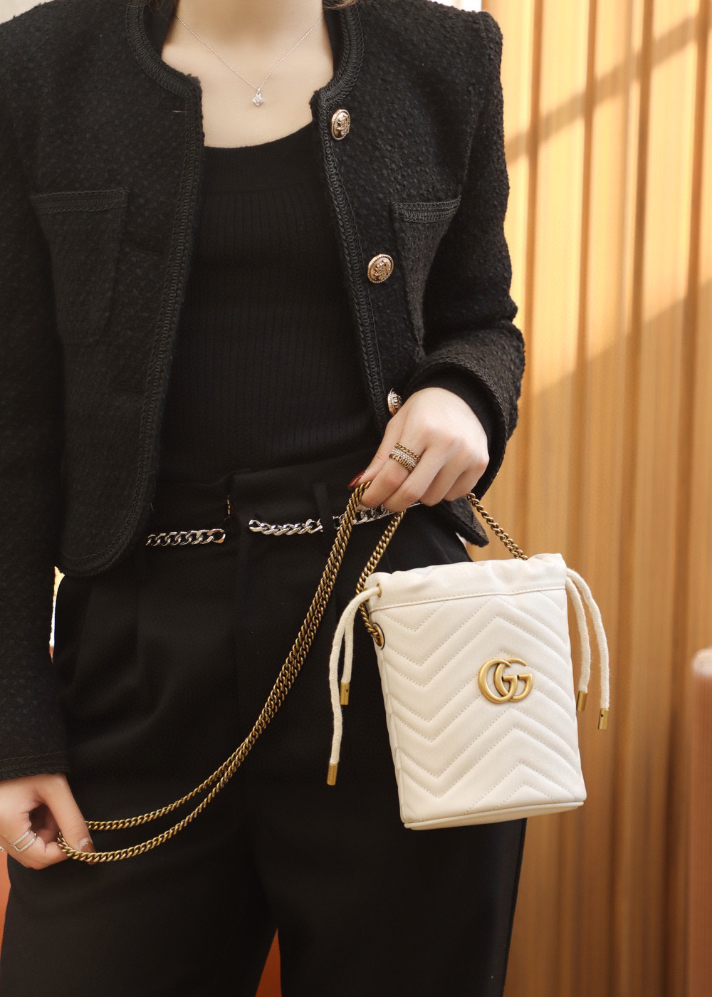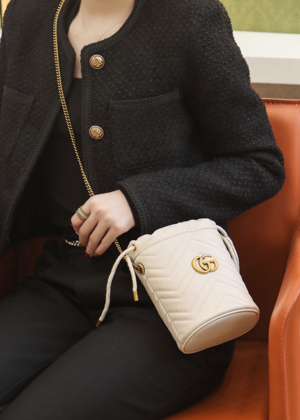 包身正面以经典的姿态𝐆𝐆标志✅五金呈现,