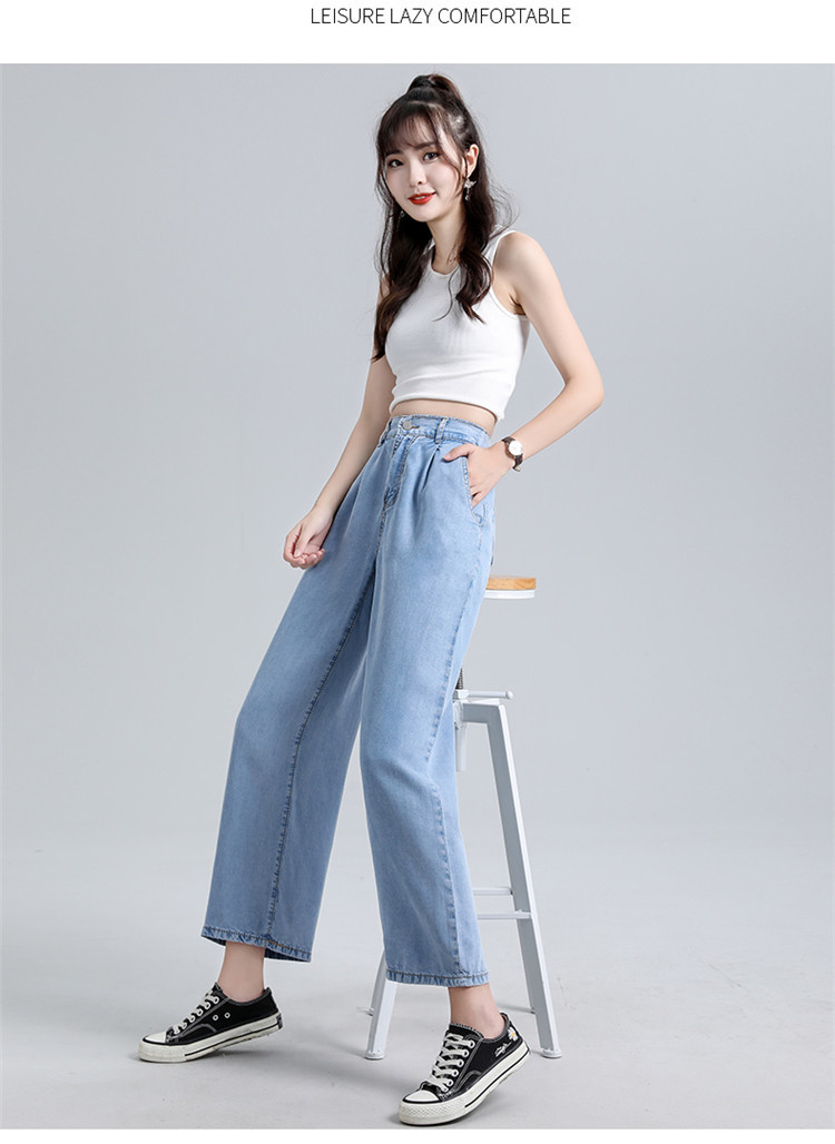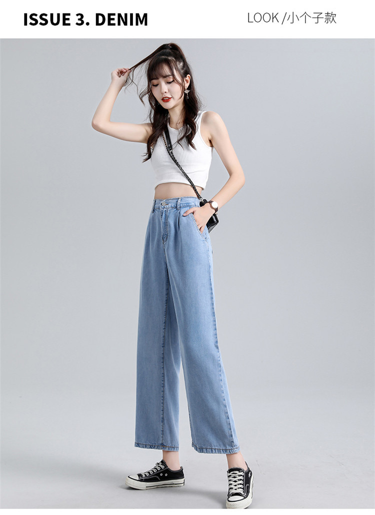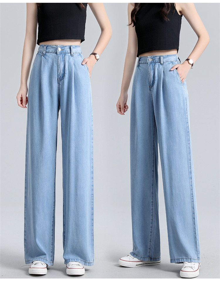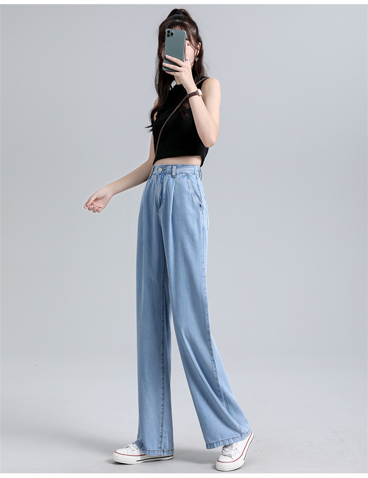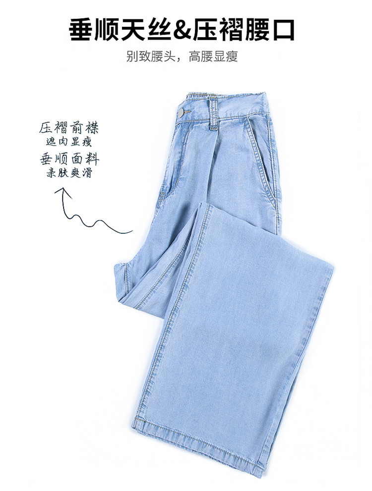 女装浅蓝色牛仔裤女高腰显瘦阔腿垂感拖地裤子薄款