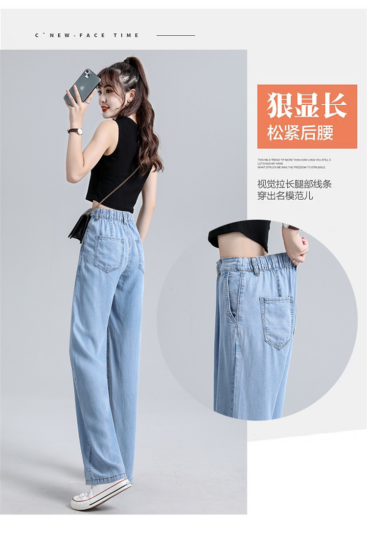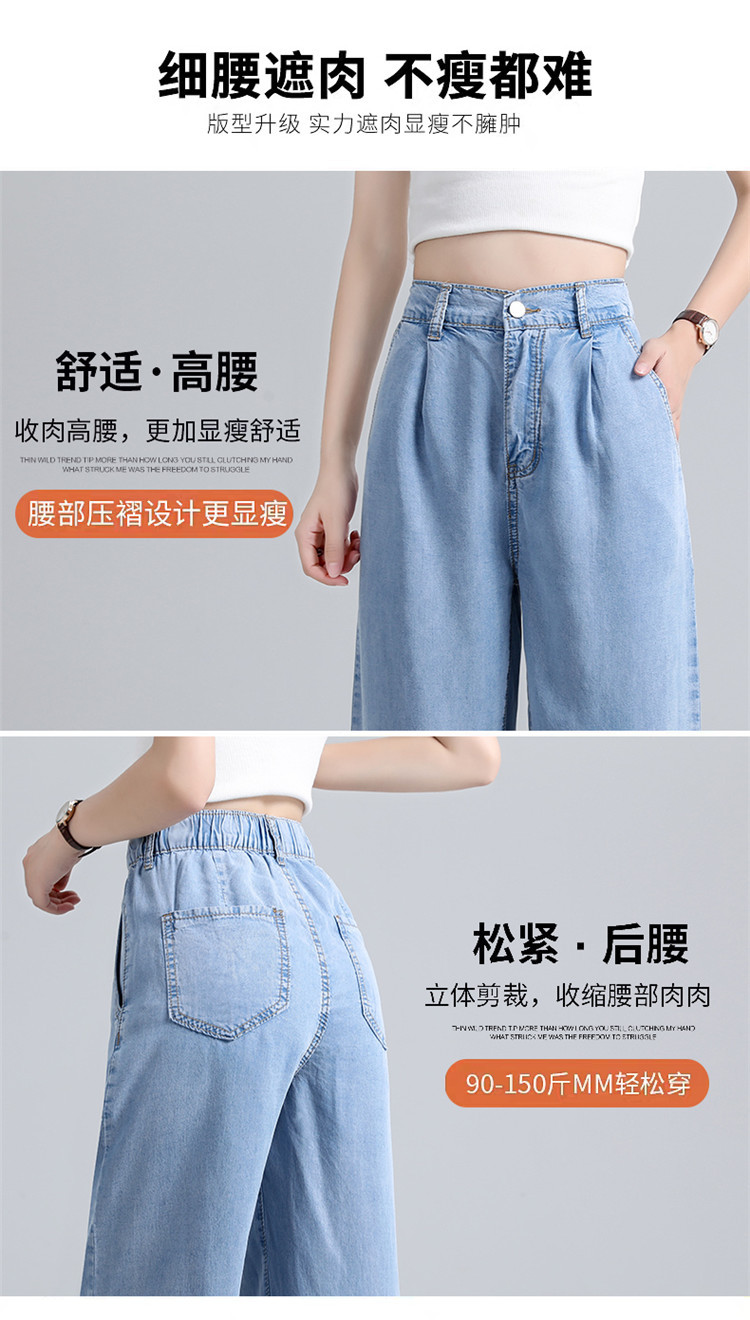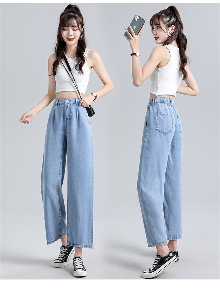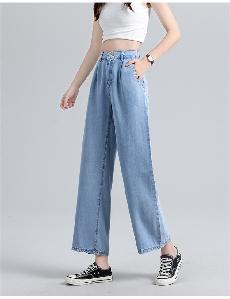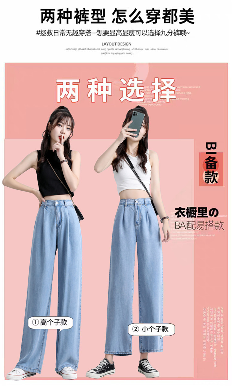 女装浅蓝色牛仔裤女高腰显瘦阔腿垂感拖地裤子薄款