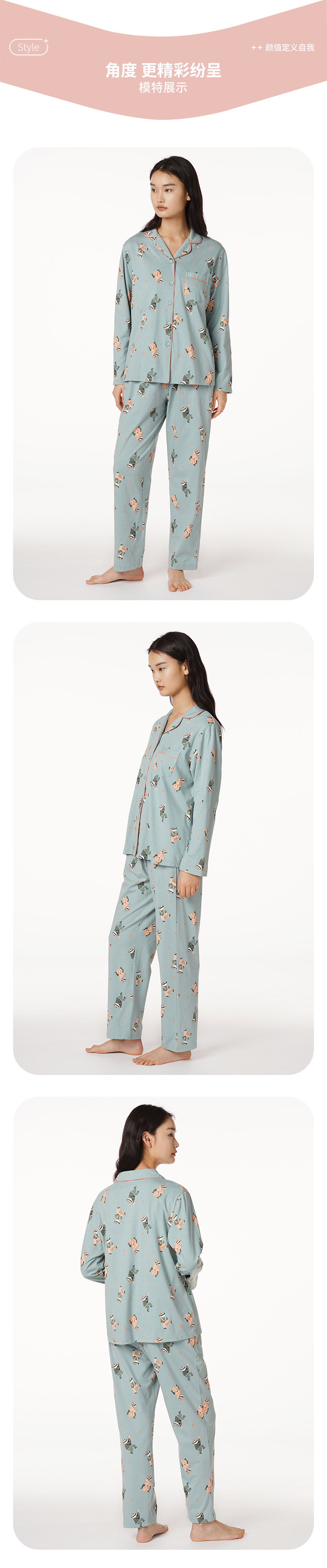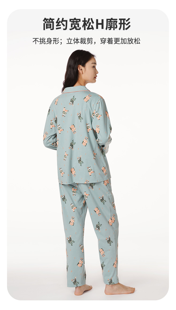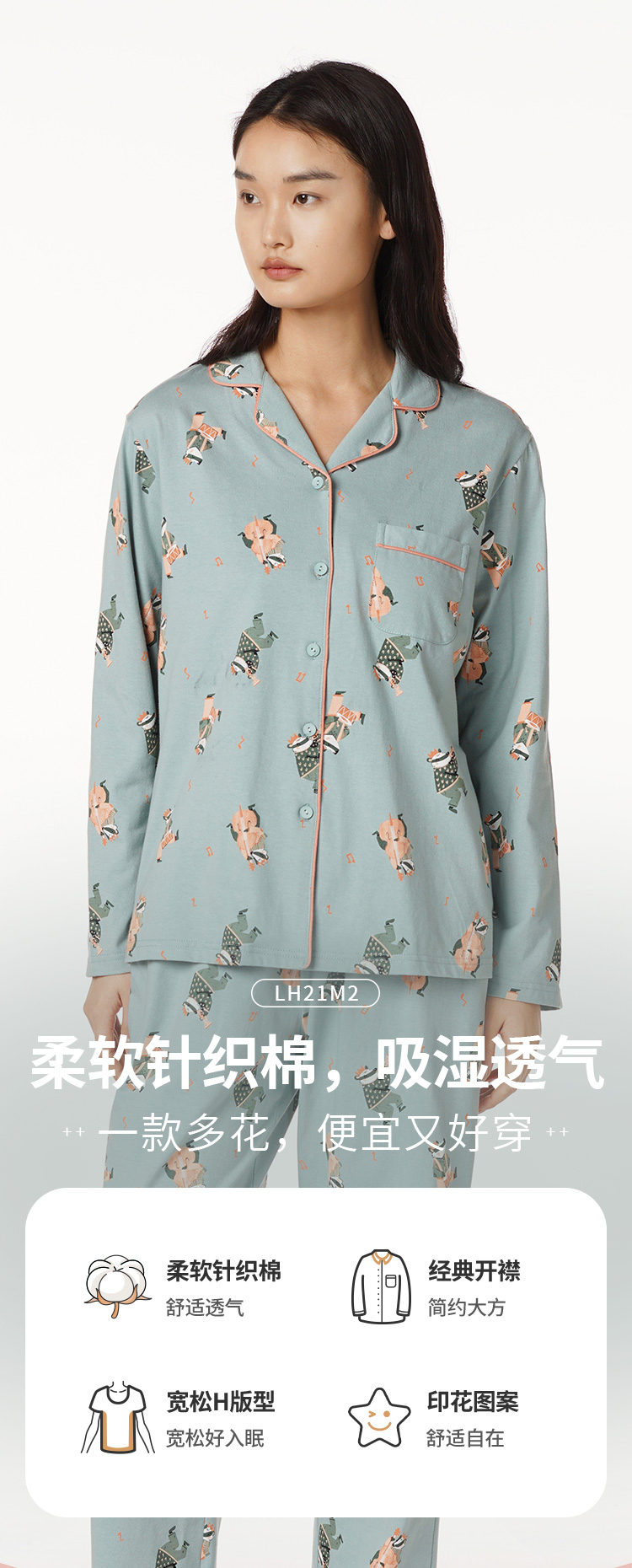 都市丽人好睡好眠女士特价棉质套装26支CVC单面薄家居服长袖睡衣LH21M2